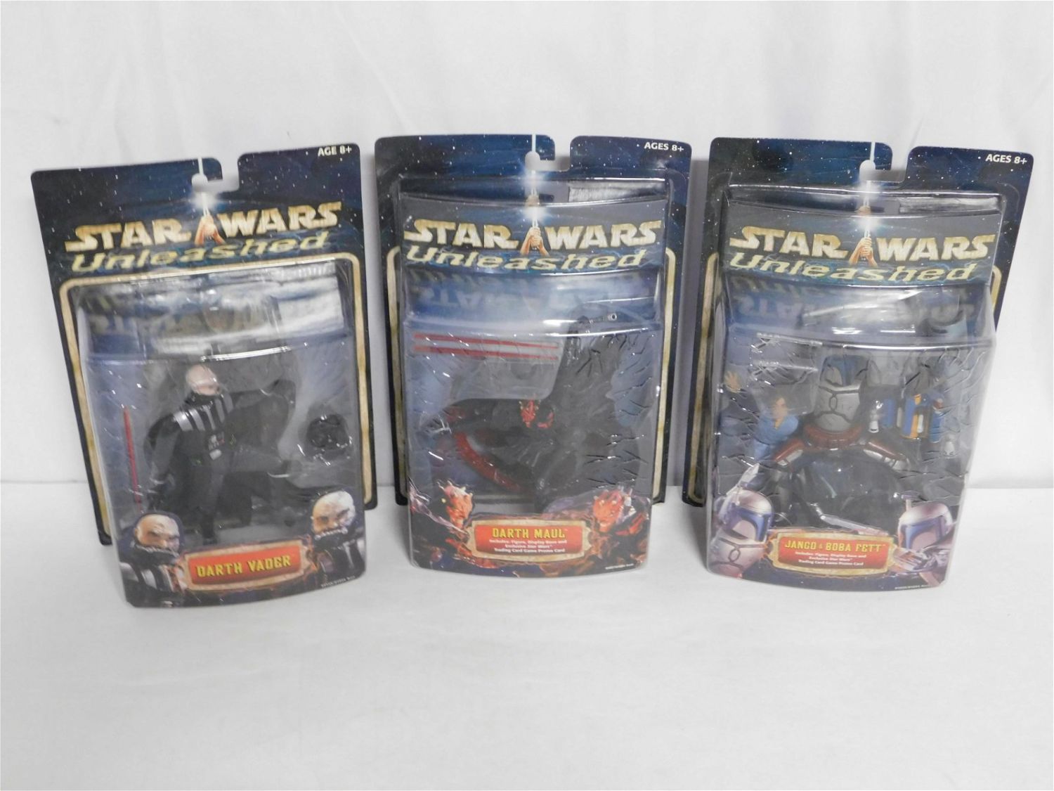 Lot of 3 Star Wars Unleashed Action Figures including Jango & Boba Fett, Darth Maul, and Darth Vader. All sealed in packages. All invoices must be paid within 24 hours of the sale. There are 3 Shipping Options. Please read the Terms of Sale and Shipping Options in the Terms. If you don’t read the terms, you will be upset because you don’t know what is happening. Local pickups are at our Monmouth Junction location on Thursday, Friday, Saturday and Monday ONLY! All pickups are by appointment only. Any condition issues will be listed in the description. Please read the terms for full information.