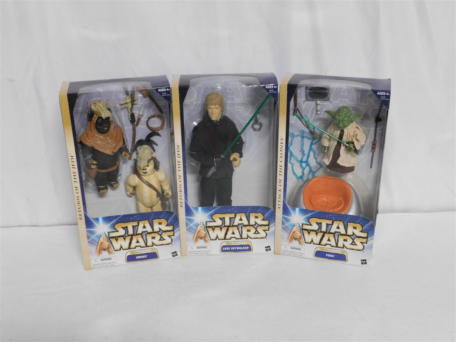 Lot of 3 Star Wars 12" Figures including Attack of the Clones Yoda, ROTJ Luke Skywalker, and ROTJ Ewoks. All new in boxes. All invoices must be paid within 24 hours of the sale. There are 3 Shipping Options. Please read the Terms of Sale and Shipping Options in the Terms. If you don’t read the terms, you will be upset because you don’t know what is happening. Local pickups are at our Monmouth Junction location on Thursday, Friday, Saturday and Monday ONLY! All pickups are by appointment only. Any condition issues will be listed in the description. Please read the terms for full information.