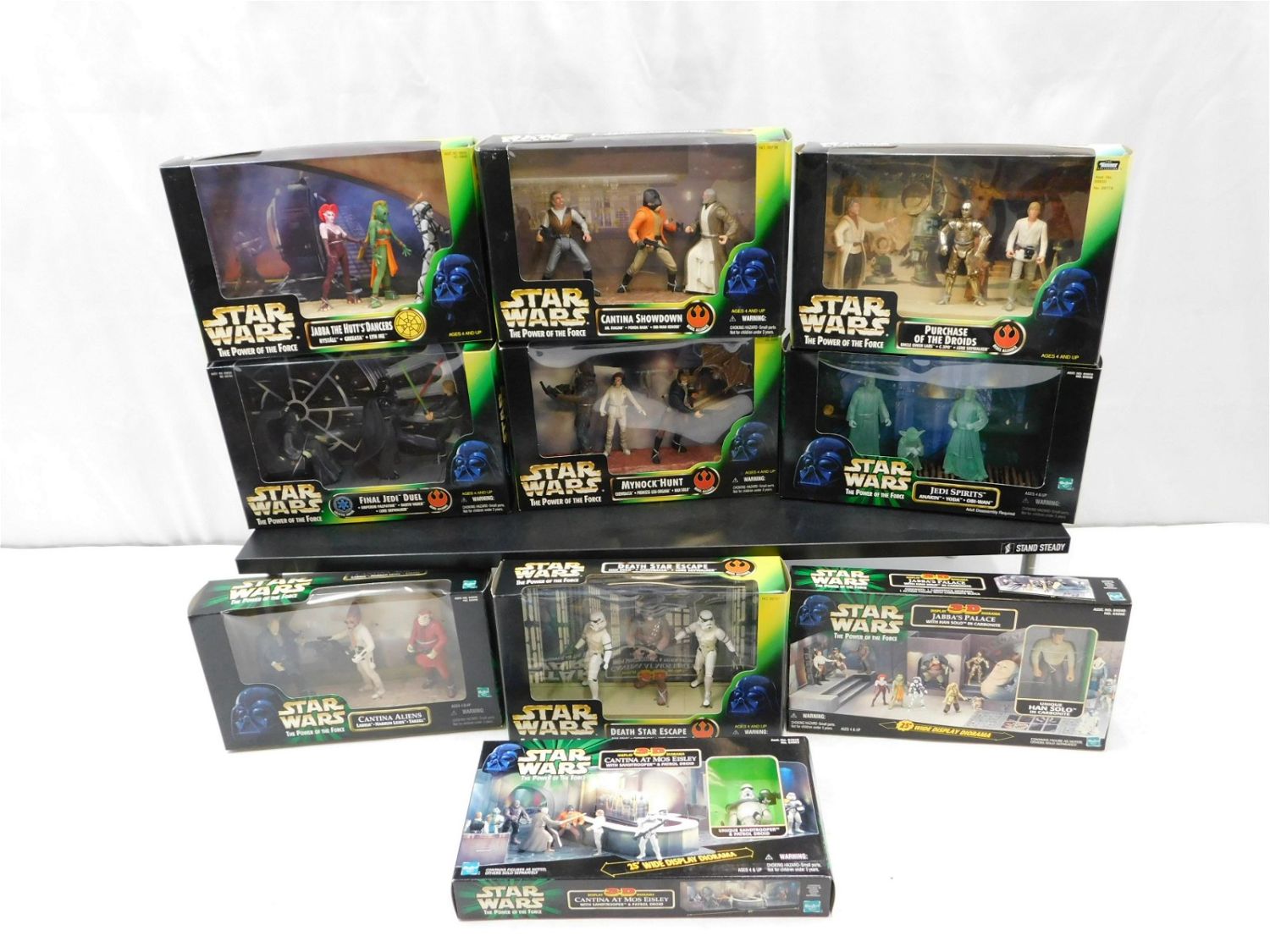 Lot of 10 Star Wars Power of the Force Sets including Final Jedi Duel, Mynock Hunt, Purchase of the Droids, Jabba the Hutt’s Dancers, Jedi Spirits, Cantina Showdown, Cantina Aliens, Death Star Escape, Jabba’s Palace 3-D, and Cantina at Mos Eisley 3-D. All New in Boxes. All invoices must be paid within 24 hours of the sale. There are 3 Shipping Options. Please read the Terms of Sale and Shipping Options in the Terms. If you don’t read the terms, you will be upset because you don’t know what is happening. Local pickups are at our Monmouth Junction location on Thursday, Friday, Saturday and Monday ONLY! All pickups are by appointment only. Any condition issues will be listed in the description. Please read the terms for full information.