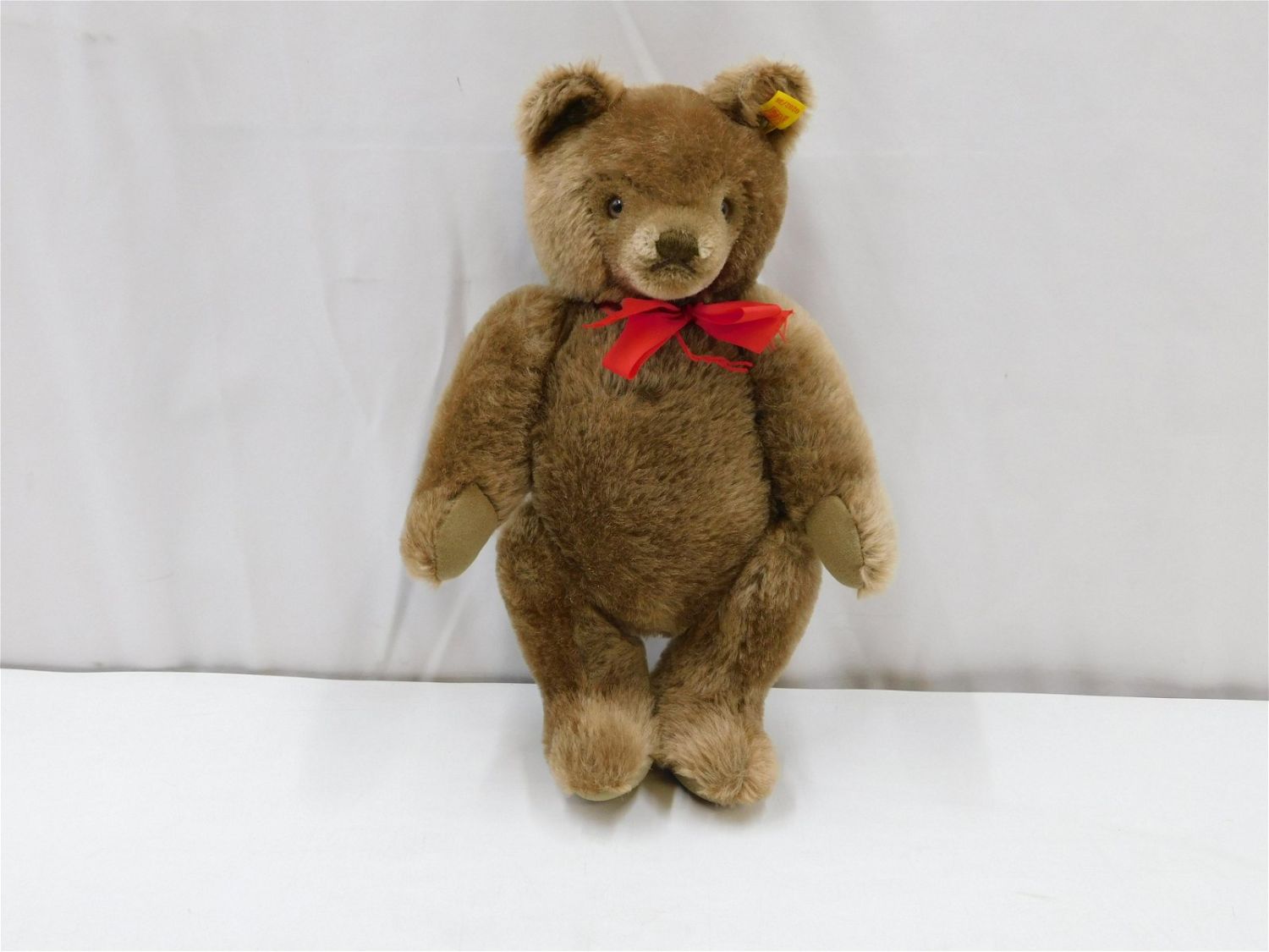 Steiff Brown Teddy Bear. Has Red Ribbon around neck – some fraying to edges of ribbon. Comes with ear button tag. Measures 13" tall x 9" wide. All invoices must be paid within 24 hours of the sale. There are 3 Shipping Options. Please read the Terms of Sale and Shipping Options in the Terms. If you don’t read the terms, you will be upset because you don’t know what is happening. Local pickups are at our Monmouth Junction location on Friday, Saturday and Monday ONLY! All pickups are by appointment only. Any condition issues will be listed in the description. Please read the terms for full information.