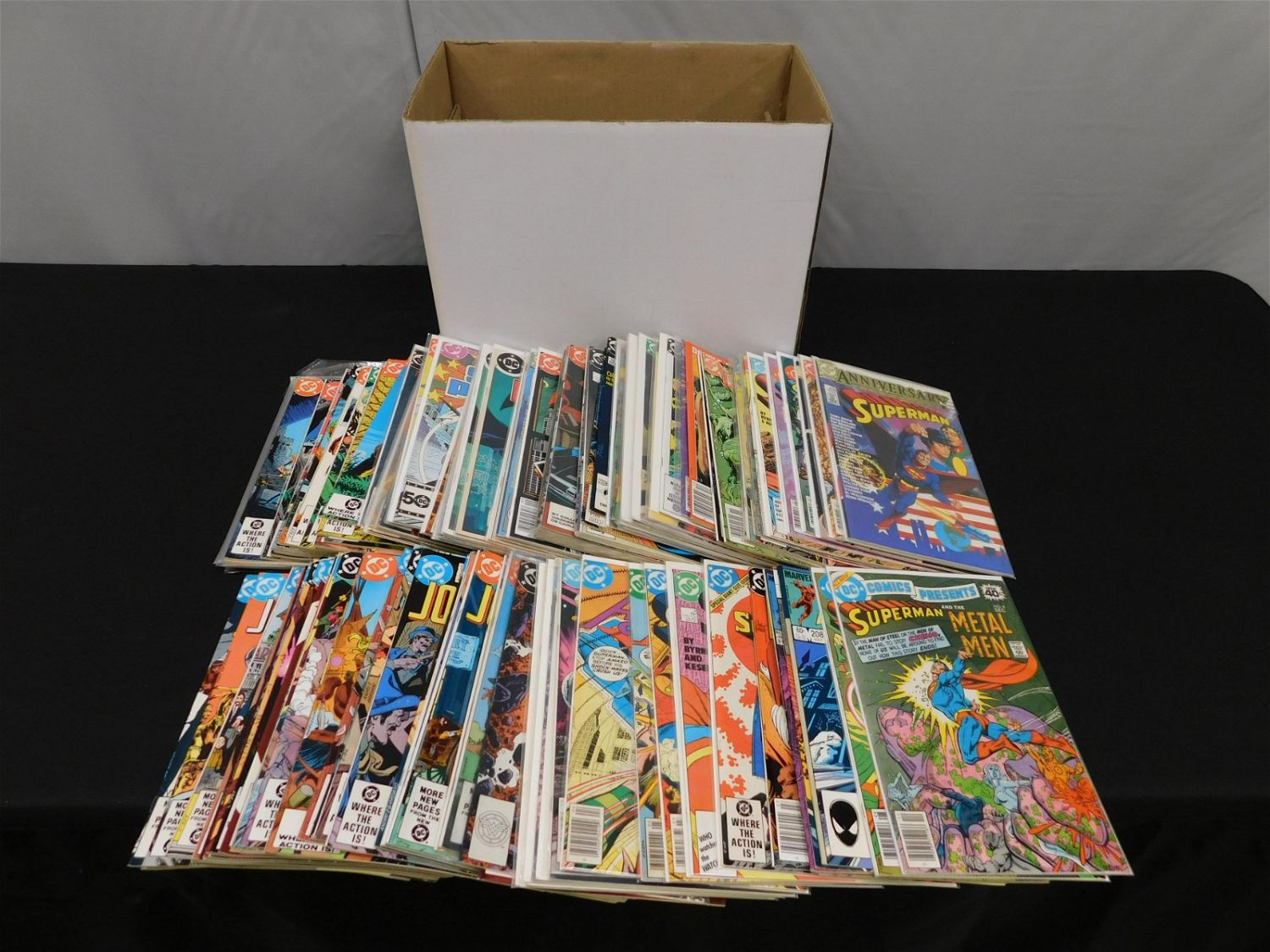 Short Box of DC Comics from the 80’s including JLA, Green Lantern/Green Arrow Reprints, Rainbow Brite – Newsstand, Saga of Swamp Thing, Wonder Woman, House of Mystery, Batman, Supergirl, Jonah Hex, Superman, Warrior, and More . All invoices must be paid within 24 hours of the sale. All items are shipped USPS or UPS and will be billed separately. A $12 handling fee is added to the shipping price per lot if shipped in house. Some items or large quantity of purchases will be packed and shipped via the Monmouth Junction UPS store. Local pickups are at our Monmouth Junction location on Thursday, Friday, Saturday and Monday ONLY! All pickups are by appointment only. Any condition issues will be listed in the description. Please read the terms for full information.