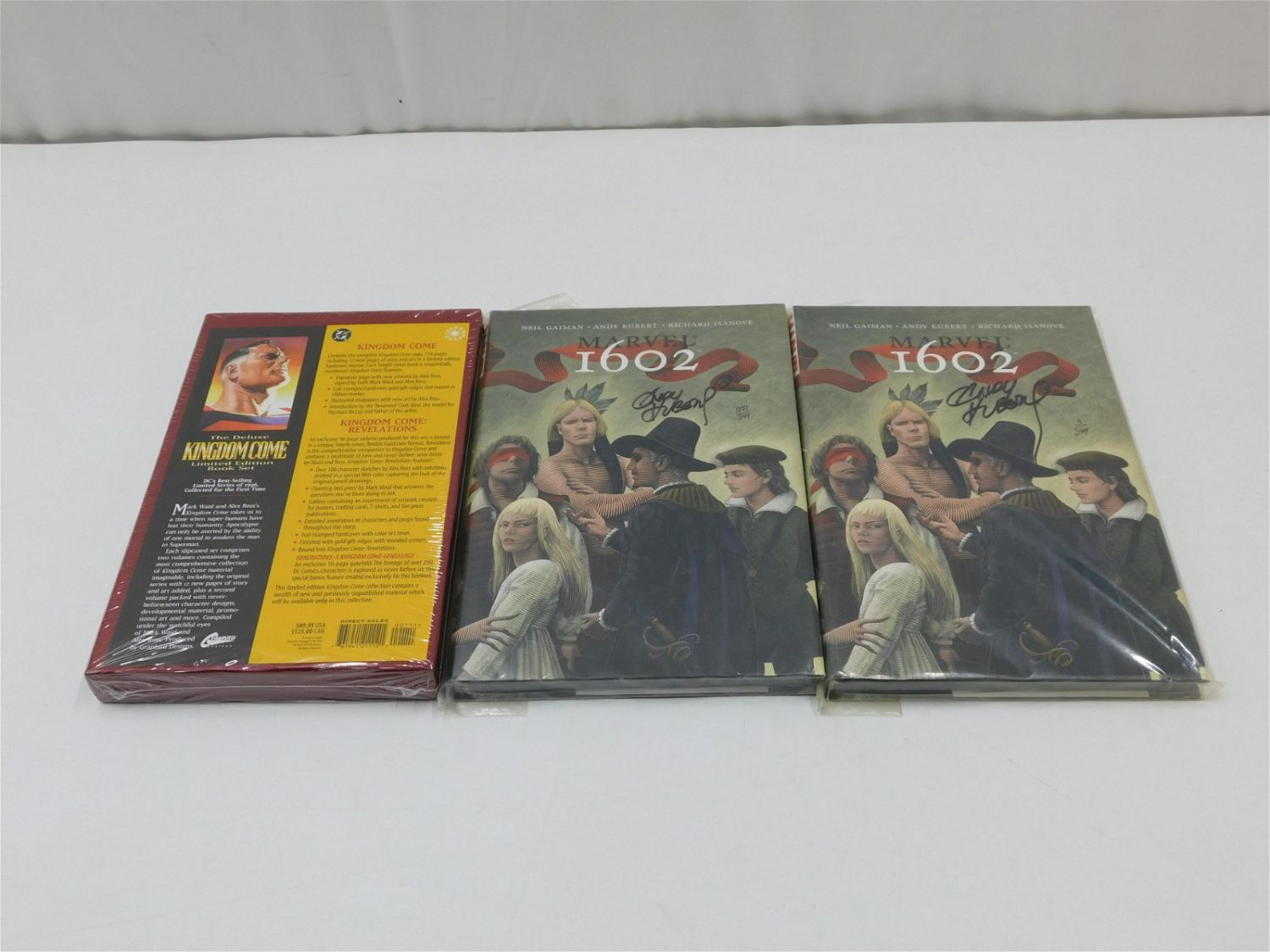 Lot of 3 Hardcover Comic Books including Deluxe Kingdom Come Limited Edition Book Set by Graphitti – Factory Sealed and (2) Dynamic Forces Bagged and Sealed Marvel 1602 – Signed and Numbered by Andy Kubert. All invoices must be paid within 24 hours of the sale. All items are shipped USPS or UPS and will be billed separately. A $12 handling fee is added to the shipping price per lot if shipped in house. Some items or large quantity of purchases will be packed and shipped via the Monmouth Junction UPS store. Local pickups are at our Monmouth Junction location on Thursday, Friday, Saturday and Monday ONLY! All pickups are by appointment only. Any condition issues will be listed in the description. Please read the terms for full information.