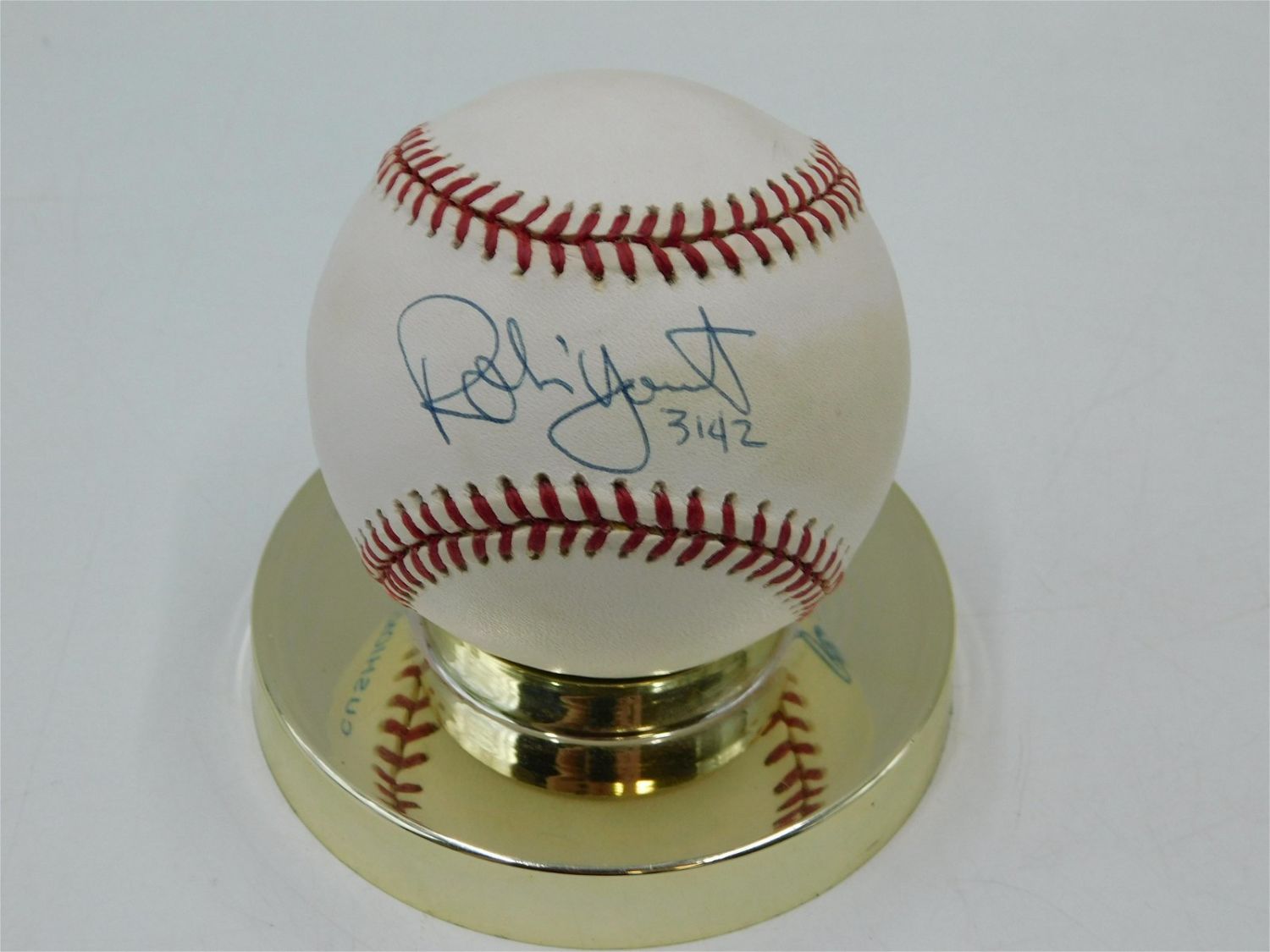 Robin Yount #3142 Autographed Baseball. Stand in photo not included. All items in this sale came from a single owner collection with a 30 day guarantee that the autographs are authentic. All invoices must be paid within 24 hours of the sale. There are 3 Shipping Options. Please read the Terms of Sale and Shipping Options in the Terms. If you don’t read the terms, you will be upset because you don’t know what is happening. Local pickups are at our Monmouth Junction location on Friday, Saturday and Monday ONLY! All pickups are by appointment only. Any condition issues will be listed in the description. Please read the terms for full information.