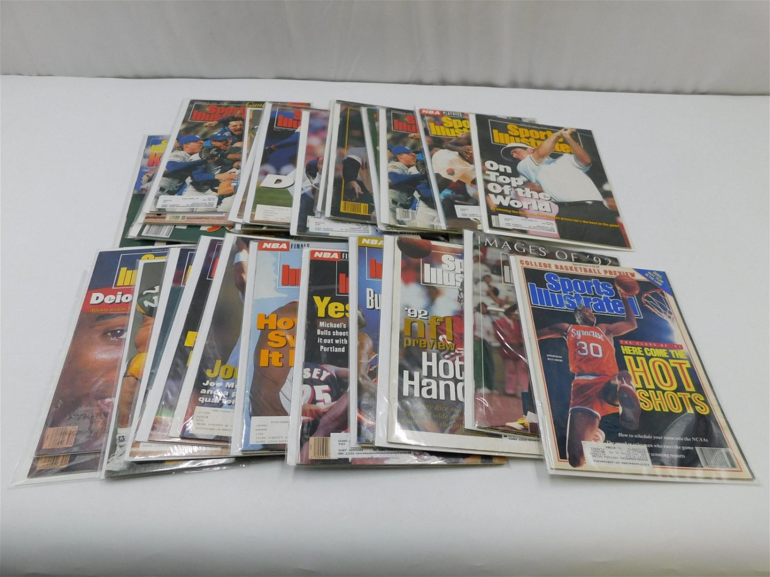 Lot of 27 Sports Illustrated Magazines from 1992 including Larry Bird/Magic Johnson Memories, Barry Bonds Rookie Cover, 4 Michael Jordan and More. All items in this sale came from a single owner collection with a 30 day guarantee that the autographs are authentic. All invoices must be paid within 24 hours of the sale. There are 3 Shipping Options. Please read the Terms of Sale and Shipping Options in the Terms. If you don’t read the terms, you will be upset because you don’t know what is happening. Local pickups are at our Monmouth Junction location on Friday, Saturday and Monday ONLY! All pickups are by appointment only. Any condition issues will be listed in the description. Please read the terms for full information.