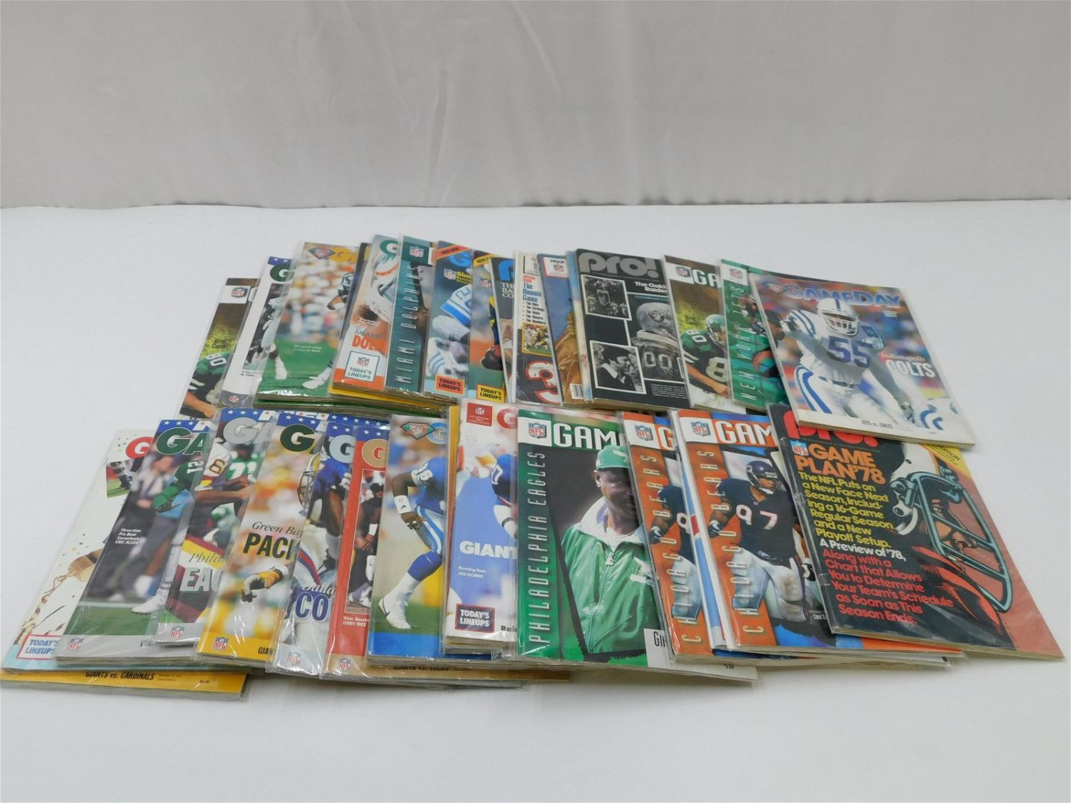 Lot of 45 NFL Gameday Programs and Pro! Magazines. Includes covers of Walter Payton, New York Giants, Jim Otto, Art Monk, Hall of Fame Class of 86, Michael Irvin, Jerry Rice, Dan Marino, Jack Lambert and Many More. Mostly from the 80’s and 90’s – Jets Vs. or Giants Vs. All items in this sale came from a single owner collection with a 30 day guarantee that the autographs are authentic. All invoices must be paid within 24 hours of the sale. There are 3 Shipping Options. Please read the Terms of Sale and Shipping Options in the Terms. If you don’t read the terms, you will be upset because you don’t know what is happening. Local pickups are at our Monmouth Junction location on Friday, Saturday and Monday ONLY! All pickups are by appointment only. Any condition issues will be listed in the description. Please read the terms for full information.
