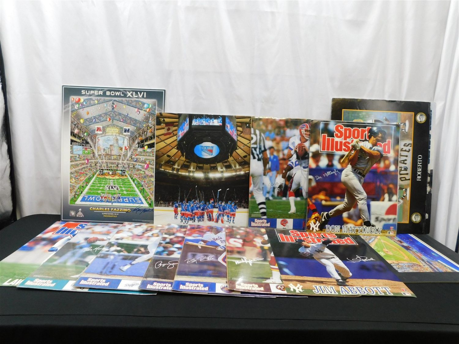 Lot of Sports Posters and Prints including Fazzino Superbowl XLVI – Autographed by Fazzino, Sports Illustrated Posters, Yankees Stadium Litho, Roberto Clemente Poster and More. All items in this sale came from a single owner collection with a 30 day guarantee that the autographs are authentic. All invoices must be paid within 24 hours of the sale. There are 3 Shipping Options. Please read the Terms of Sale and Shipping Options in the Terms. If you don’t read the terms, you will be upset because you don’t know what is happening. Local pickups are at our Monmouth Junction location on Friday, Saturday and Monday ONLY! All pickups are by appointment only. Any condition issues will be listed in the description. Please read the terms for full information.