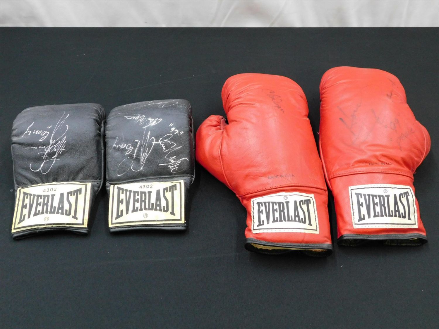 Lot of 4 Autographed Boxing Gloves – Unknown Signatures. All items in this sale came from a single owner collection with a 30 day guarantee that the autographs are authentic. All invoices must be paid within 24 hours of the sale. There are 3 Shipping Options. Please read the Terms of Sale and Shipping Options in the Terms. If you don’t read the terms, you will be upset because you don’t know what is happening. Local pickups are at our Monmouth Junction location on Friday, Saturday and Monday ONLY! All pickups are by appointment only. Any condition issues will be listed in the description. Please read the terms for full information.