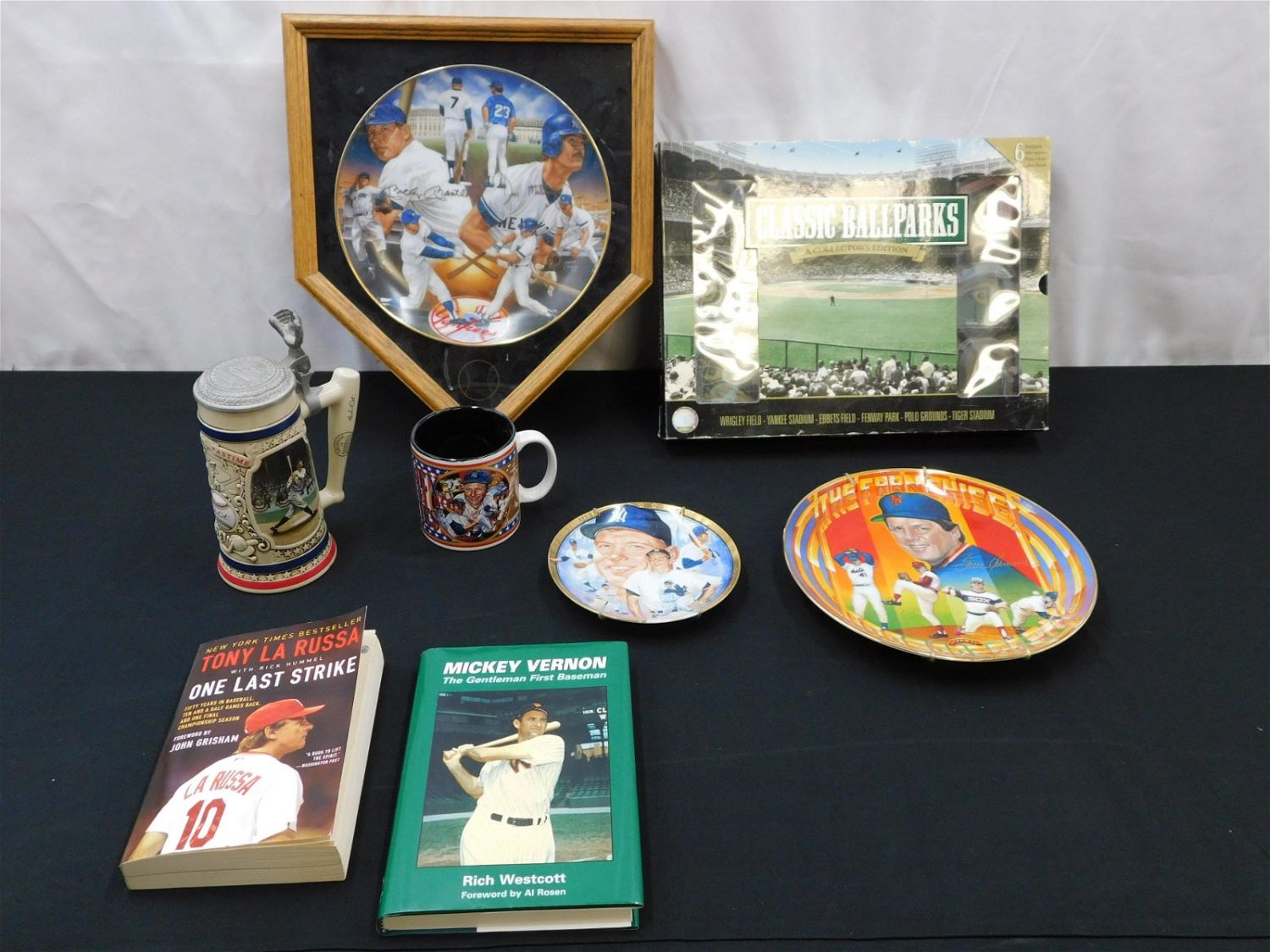 Lot of Mixed Baseball Related Items including Autographed Book by Tony La Russa, Autographed Book by Mickey Vernon, Collector Plates, Miniature Baseball Stadiums and More. All items in this sale came from a single owner collection with a 30 day guarantee that the autographs are authentic. All invoices must be paid within 24 hours of the sale. There are 3 Shipping Options. Please read the Terms of Sale and Shipping Options in the Terms. If you don’t read the terms, you will be upset because you don’t know what is happening. Local pickups are at our Monmouth Junction location on Friday, Saturday and Monday ONLY! All pickups are by appointment only. Any condition issues will be listed in the description. Please read the terms for full information.