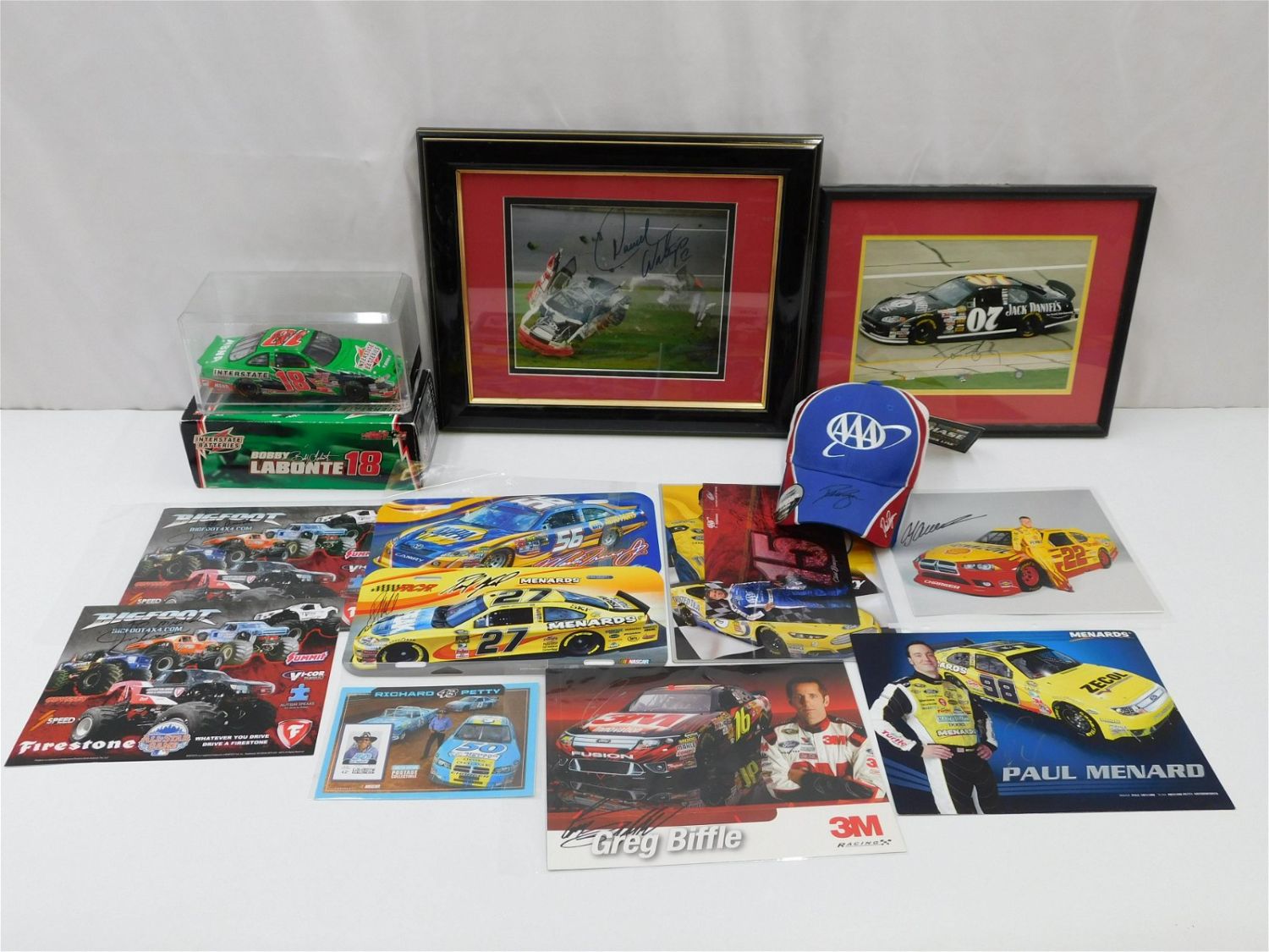 Lot of NASCAR Autographed Items including Bobby Labonte Autographed Car – Damage to roof and damage to Lucite case, David Ragan Autographed Hat, Paul Menard Auto, Darrell Waltrip Autographed Framed Photo, Greg Biffle Autograph and More. All items in this sale came from a single owner collection with a 30 day guarantee that the autographs are authentic. All invoices must be paid within 24 hours of the sale. There are 3 Shipping Options. Please read the Terms of Sale and Shipping Options in the Terms. If you don’t read the terms, you will be upset because you don’t know what is happening. Local pickups are at our Monmouth Junction location on Friday, Saturday and Monday ONLY! All pickups are by appointment only. Any condition issues will be listed in the description. Please read the terms for full information.