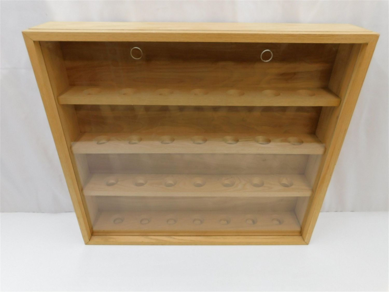 Wooden Baseball Holder Display Shelf. Holds 28 baseballs. Measures 27.5" tall x 31" wide x 5.5" deep. Some scratching present on the plexi. All items in this sale came from a single owner collection with a 30 day guarantee that the autographs are authentic. All invoices must be paid within 24 hours of the sale. There are 3 Shipping Options. Please read the Terms of Sale and Shipping Options in the Terms. If you don’t read the terms, you will be upset because you don’t know what is happening. Local pickups are at our Monmouth Junction location on Friday, Saturday and Monday ONLY! All pickups are by appointment only. Any condition issues will be listed in the description. Please read the terms for full information.