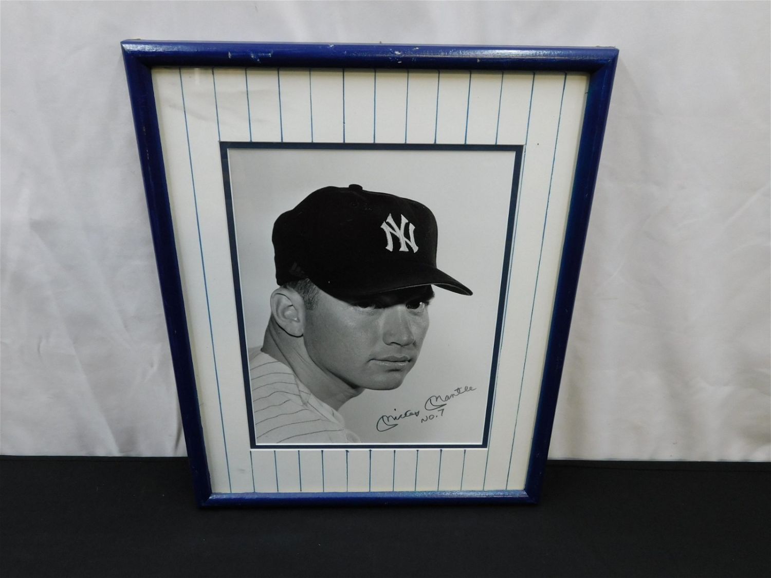 Framed Print Autographed by New York Yankees Mickey Mantle. Measures 19" tall x 15" wide. All items in this sale came from a single owner collection with a 30 day guarantee that the autographs are authentic. All invoices must be paid within 24 hours of the sale. There are 3 Shipping Options. Please read the Terms of Sale and Shipping Options in the Terms. If you don’t read the terms, you will be upset because you don’t know what is happening. Local pickups are at our Monmouth Junction location on Friday, Saturday and Monday ONLY! All pickups are by appointment only. Any condition issues will be listed in the description. Please read the terms for full information.