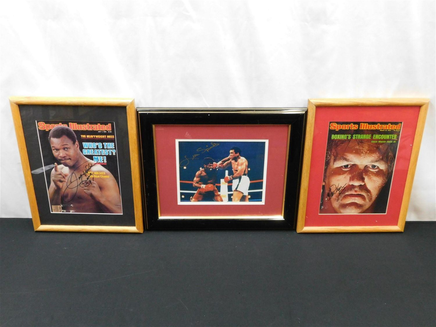 Lot of 3 Autographed Framed Boxing Items including Sports Illustrated March 24 1975 – Chuck Wepner, Sports Illustrated July 1 1985 – Larry Holmes – Comes with Signed Larry Holmes Business Card, and Photograph – Leon Spinks. Largest measures 14" tall x 7" wide. All items in this sale came from a single owner collection with a 30 day guarantee that the autographs are authentic. All invoices must be paid within 24 hours of the sale. There are 3 Shipping Options. Please read the Terms of Sale and Shipping Options in the Terms. If you don’t read the terms, you will be upset because you don’t know what is happening. Local pickups are at our Monmouth Junction location on Friday, Saturday and Monday ONLY! All pickups are by appointment only. Any condition issues will be listed in the description. Please read the terms for full information.