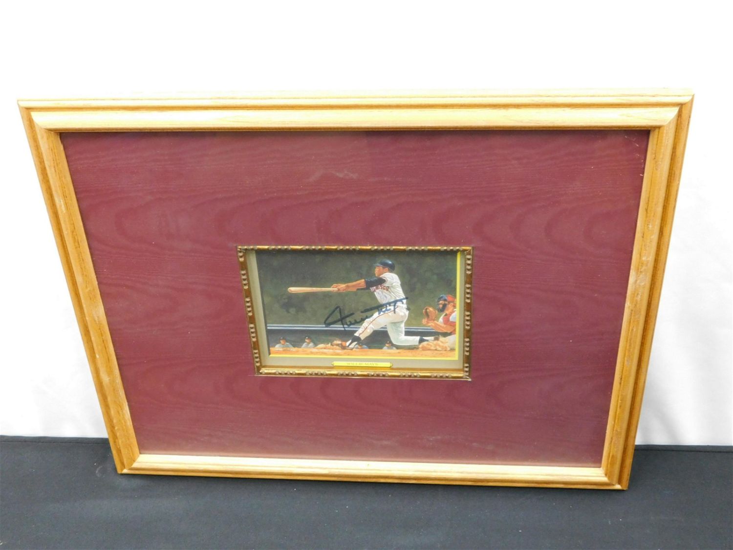 Framed Autographed Artist Color Card – Willie Mays. Measures 16" tall x 20" wide. All items in this sale came from a single owner collection with a 30 day guarantee that the autographs are authentic. All invoices must be paid within 24 hours of the sale. There are 3 Shipping Options. Please read the Terms of Sale and Shipping Options in the Terms. If you don’t read the terms, you will be upset because you don’t know what is happening. Local pickups are at our Monmouth Junction location on Friday, Saturday and Monday ONLY! All pickups are by appointment only. Any condition issues will be listed in the description. Please read the terms for full information.