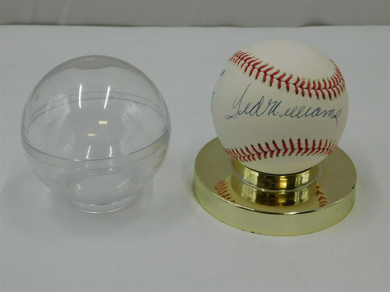 Ted Williams Autographed Baseball. Comes in Baseball Case – Missing Base. Stand in photo not included. All items in this sale came from a single owner collection with a 30 day guarantee that the autographs are authentic. All invoices must be paid within 24 hours of the sale. There are 3 Shipping Options. Please read the Terms of Sale and Shipping Options in the Terms. If you don’t read the terms, you will be upset because you don’t know what is happening. Local pickups are at our Monmouth Junction location on Friday, Saturday and Monday ONLY! All pickups are by appointment only. Any condition issues will be listed in the description. Please read the terms for full information.