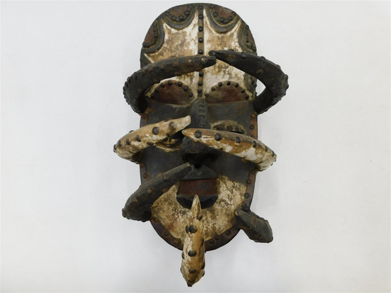 African Tribal Mask. Spider Beast. Has metal highlights. Measures 18" tall x 10" wide x 13" deep. Has wear consistent with age. Any questions, contact us. All invoices must be paid within 24 hours of the sale. There are 3 Shipping Options. Please read the Terms of Sale and Shipping Options in the Terms. If you don’t read the terms, you will be upset because you don’t know what is happening. Local pickups are at our Monmouth Junction location on Thursday, Friday, Saturday and Monday ONLY! All pickups are by appointment only. Any major condition issues will be listed in the description. Please read the terms for full information.