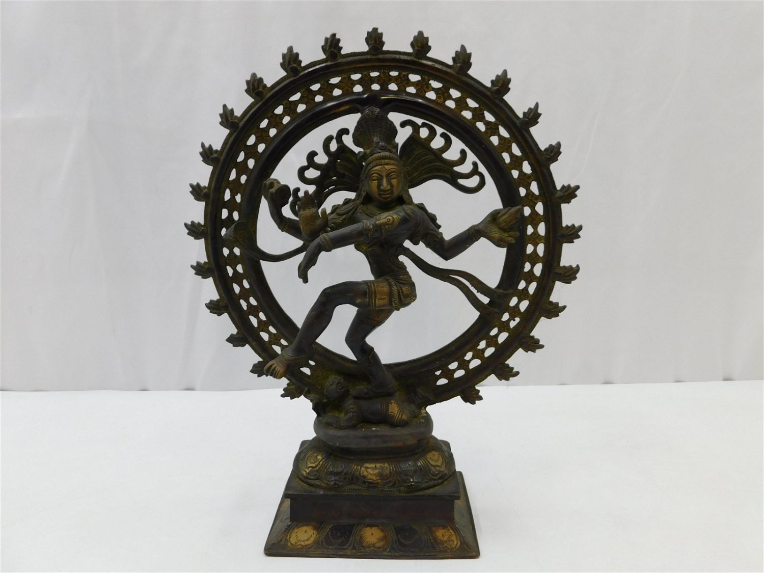 Bronze Hindu Dancing Shiva Nataraja Statue. Measures 14" tall x 11" wide x 5" deep. Has wear consistent with age. Any questions, contact us. All invoices must be paid within 24 hours of the sale. There are 3 Shipping Options. Please read the Terms of Sale and Shipping Options in the Terms. If you don’t read the terms, you will be upset because you don’t know what is happening. Local pickups are at our Monmouth Junction location on Thursday, Friday, Saturday and Monday ONLY! All pickups are by appointment only. Any major condition issues will be listed in the description. Please read the terms for full information.