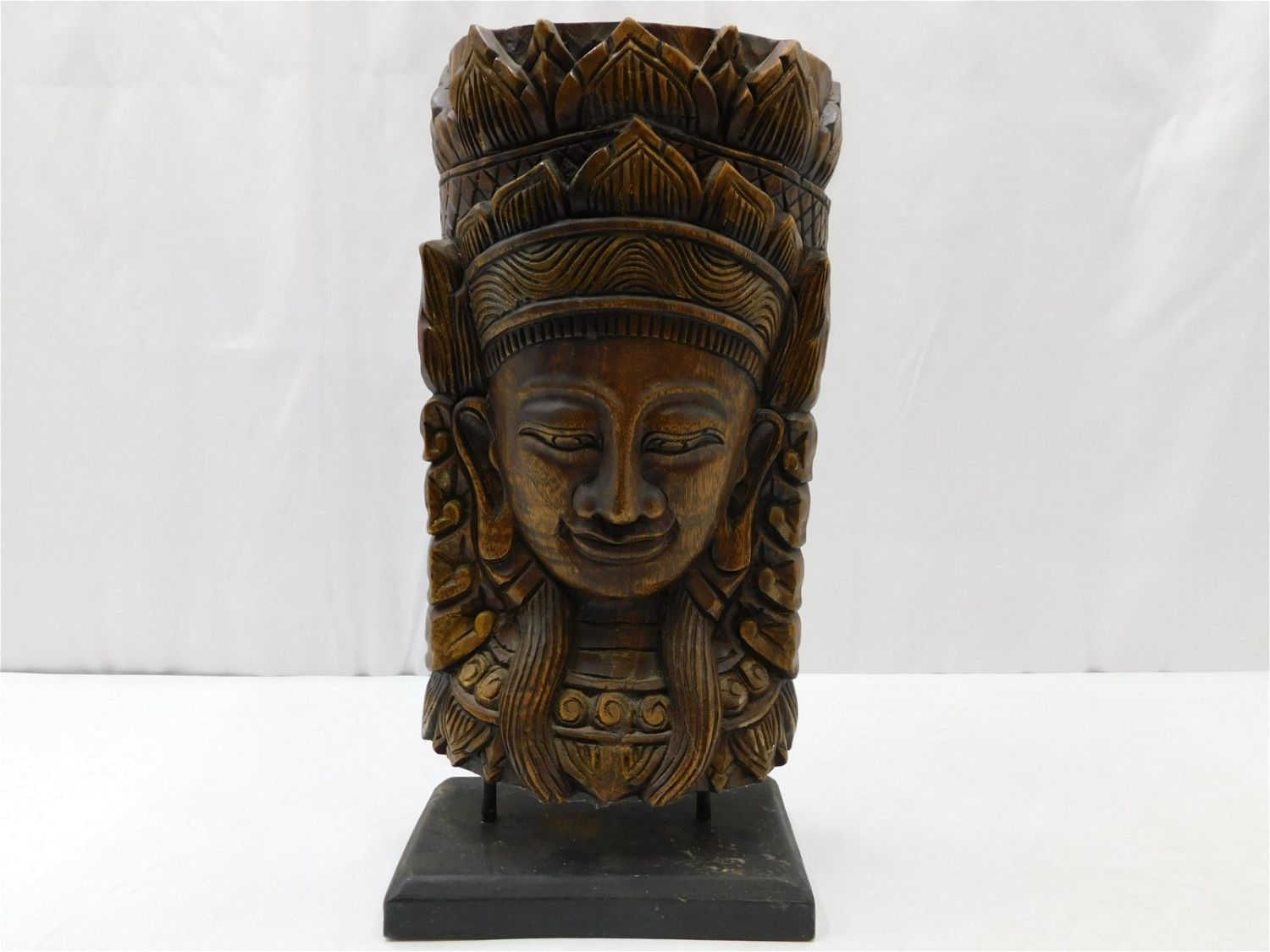Hand Carved Bust of a God on Wooden Stand. Measures 20" tall x 10" wide x 6" deep. Has wear consistent with age. Any questions, contact us. All invoices must be paid within 24 hours of the sale. There are 3 Shipping Options. Please read the Terms of Sale and Shipping Options in the Terms. If you don’t read the terms, you will be upset because you don’t know what is happening. Local pickups are at our Monmouth Junction location on Thursday, Friday, Saturday and Monday ONLY! All pickups are by appointment only. Any major condition issues will be listed in the description. Please read the terms for full information.