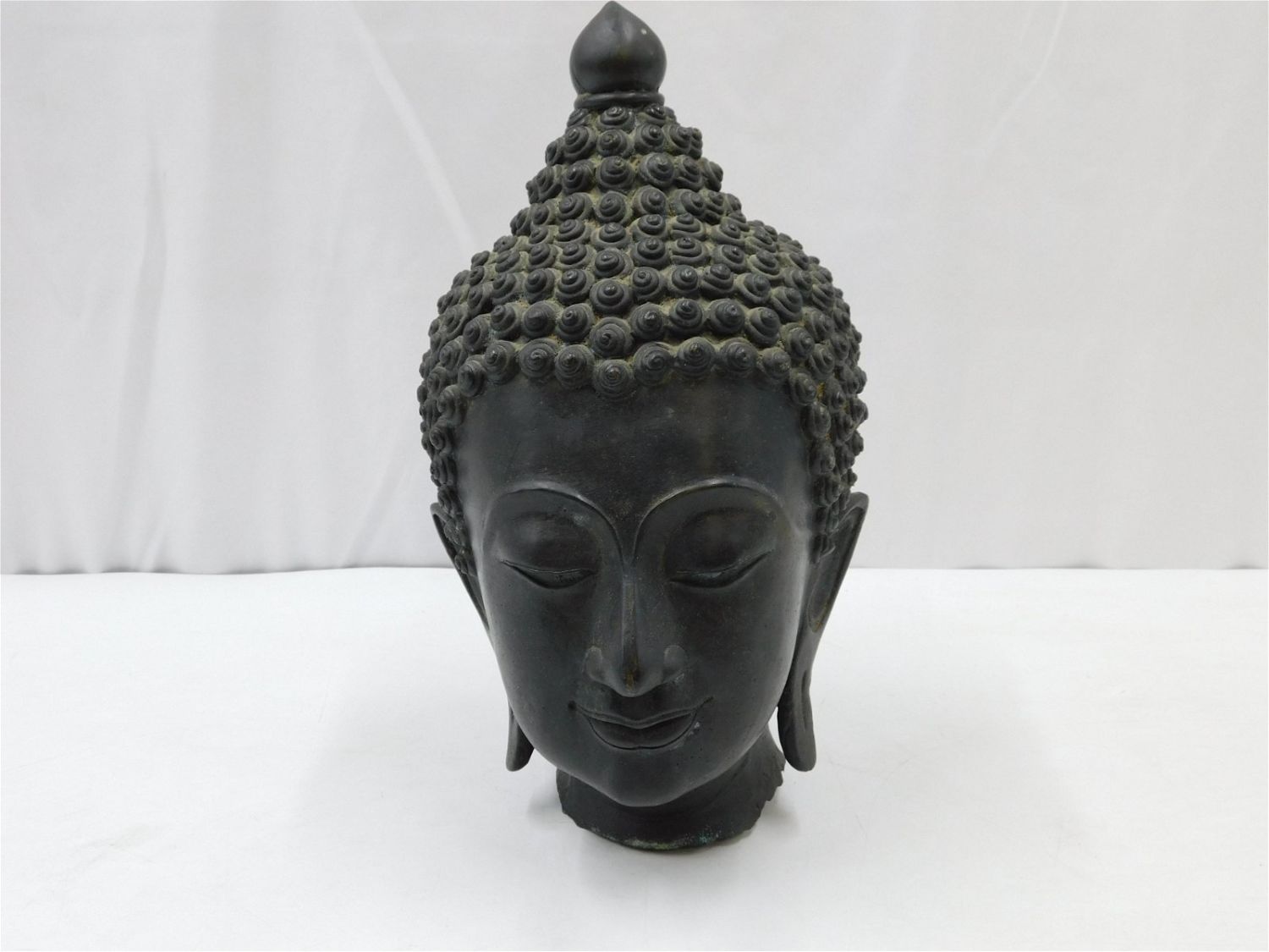 Bronze Buddha Head Statue. Measures 12" tall x 7" wide x 7" deep. Has wear consistent with age. Any questions, contact us. All invoices must be paid within 24 hours of the sale. There are 3 Shipping Options. Please read the Terms of Sale and Shipping Options in the Terms. If you don’t read the terms, you will be upset because you don’t know what is happening. Local pickups are at our Monmouth Junction location on Thursday, Friday, Saturday and Monday ONLY! All pickups are by appointment only. Any major condition issues will be listed in the description. Please read the terms for full information.