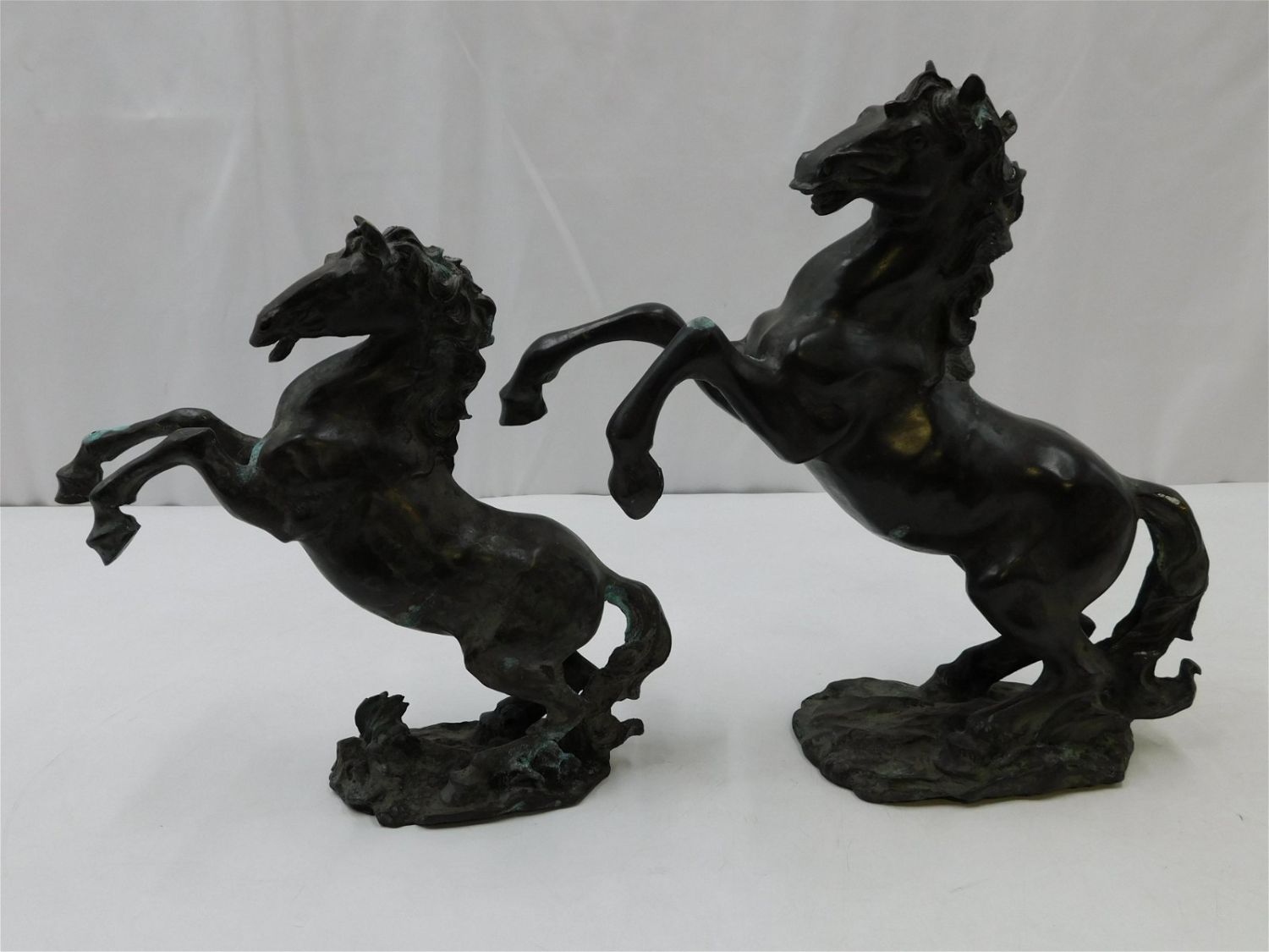 Lot of 2 Bronze Bucking Horse Statues. Showing some signs of corrosion. Needs to be cleaned. Largest measures 14" tall x 14" wide. Has wear consistent with age. Any questions, contact us. All invoices must be paid within 24 hours of the sale. There are 3 Shipping Options. Please read the Terms of Sale and Shipping Options in the Terms. If you don’t read the terms, you will be upset because you don’t know what is happening. Local pickups are at our Monmouth Junction location on Thursday, Friday, Saturday and Monday ONLY! All pickups are by appointment only. Any major condition issues will be listed in the description. Please read the terms for full information.