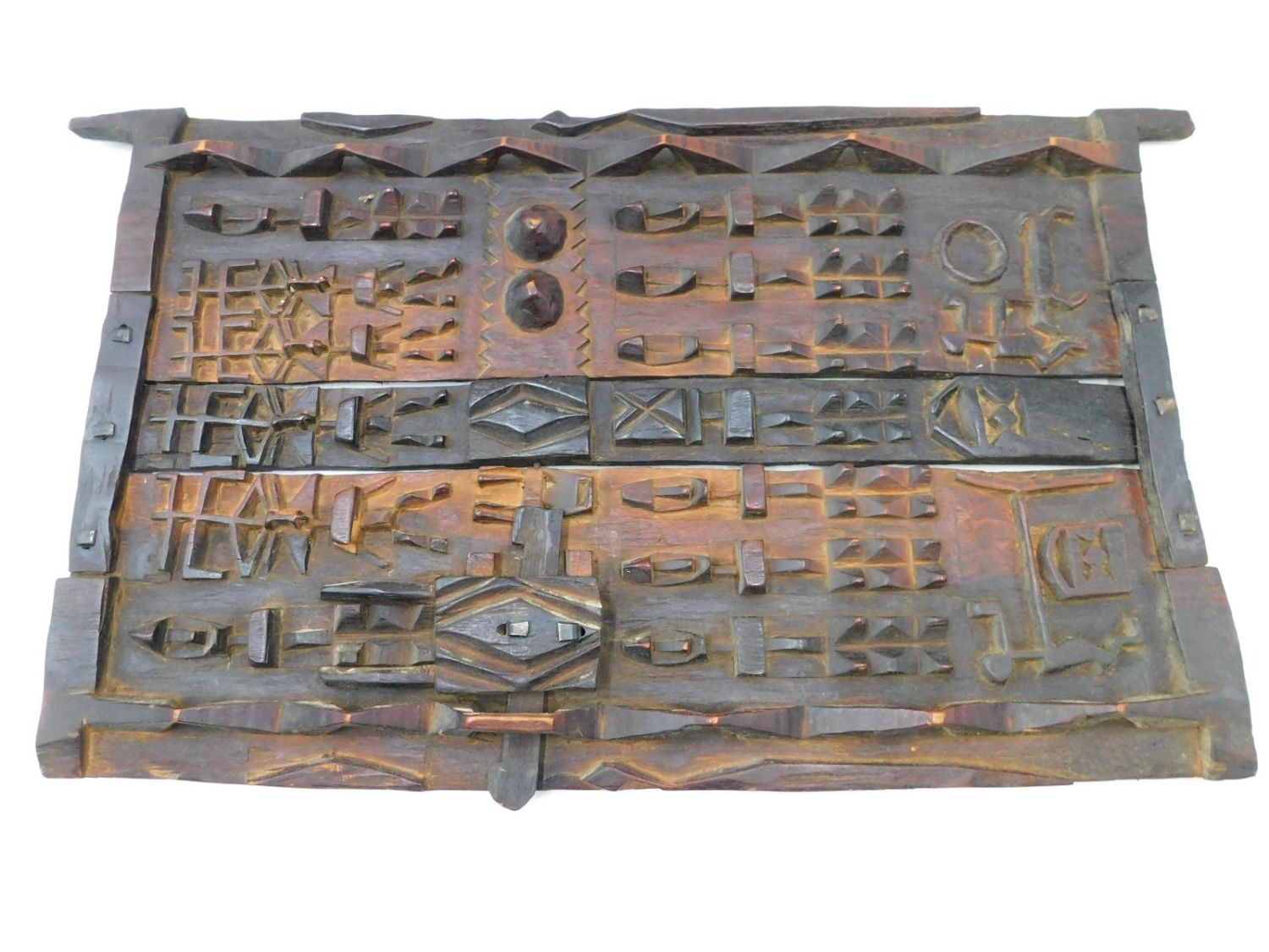 African Tribal Art Influenced Wooden Door. Minor Breaks throughout. Measures 33" tall x 18" wide x 4" deep. Has wear consistent with age. Any questions, contact us. All invoices must be paid within 24 hours of the sale. There are 3 Shipping Options. Please read the Terms of Sale and Shipping Options in the Terms. If you don’t read the terms, you will be upset because you don’t know what is happening. Local pickups are at our Monmouth Junction location on Thursday, Friday, Saturday and Monday ONLY! All pickups are by appointment only. Any major condition issues will be listed in the description. Please read the terms for full information.