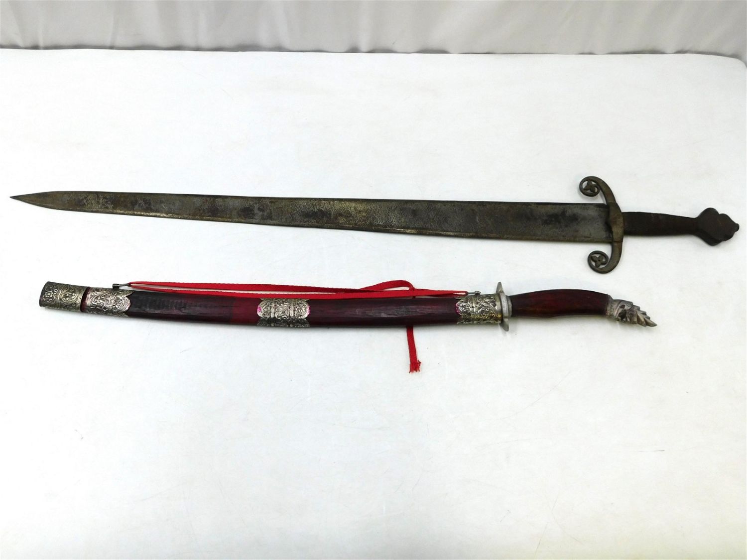Lot of 2 Fantasy/Medieval Swords. Largest measures 41" long. Has wear consistent with age. Any questions, contact us. All invoices must be paid within 24 hours of the sale. There are 3 Shipping Options. Please read the Terms of Sale and Shipping Options in the Terms. If you don’t read the terms, you will be upset because you don’t know what is happening. Local pickups are at our Monmouth Junction location on Thursday, Friday, Saturday and Monday ONLY! All pickups are by appointment only. Any major condition issues will be listed in the description. Please read the terms for full information.