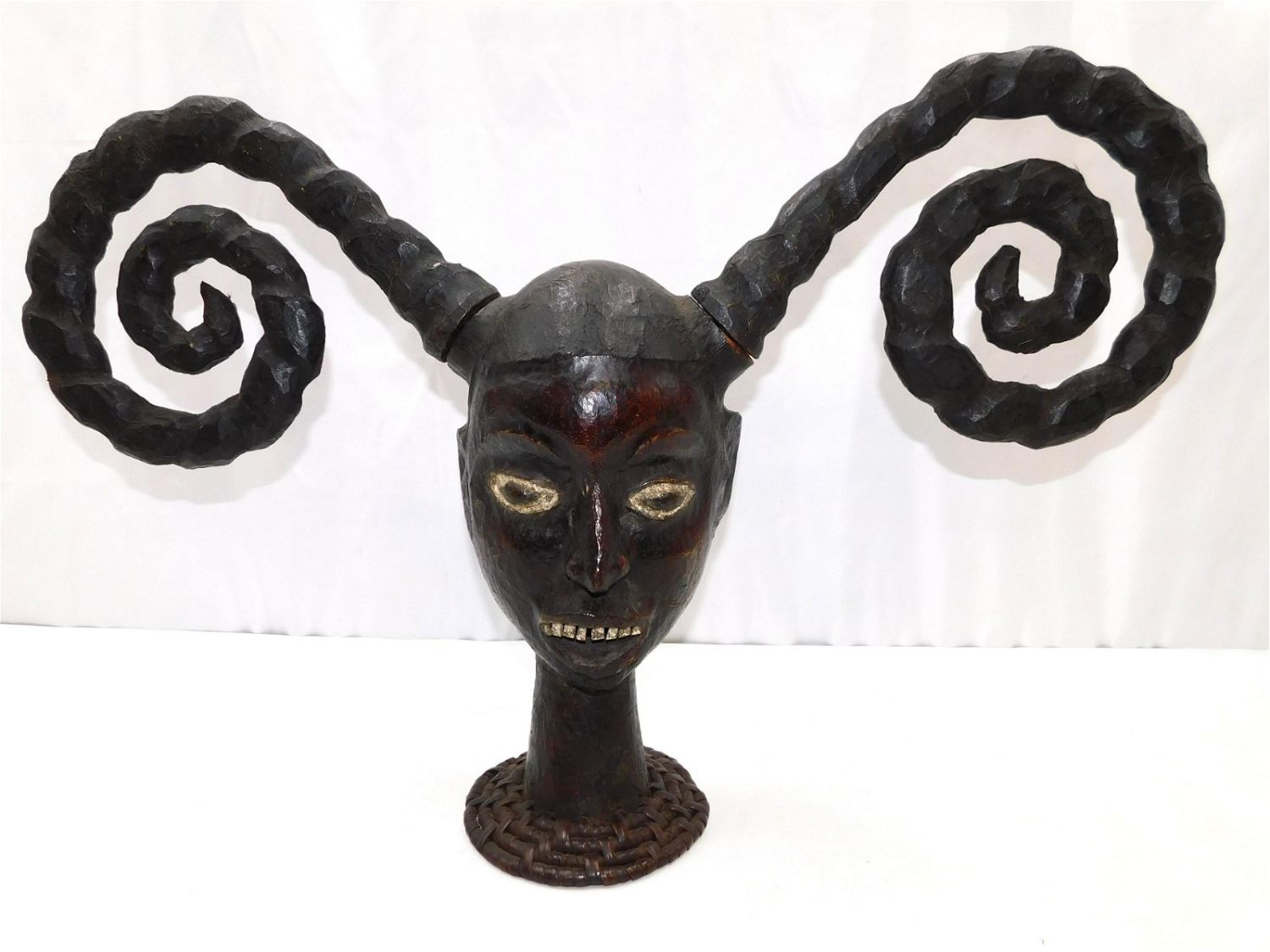 African Tribal Art Head Crest. Measures 21" tall x 32" wide x 8" deep. Has wear consistent with age. Any questions, contact us. All invoices must be paid within 24 hours of the sale. There are 3 Shipping Options. Please read the Terms of Sale and Shipping Options in the Terms. If you don’t read the terms, you will be upset because you don’t know what is happening. Local pickups are at our Monmouth Junction location on Thursday, Friday, Saturday and Monday ONLY! All pickups are by appointment only. Any major condition issues will be listed in the description. Please read the terms for full information.