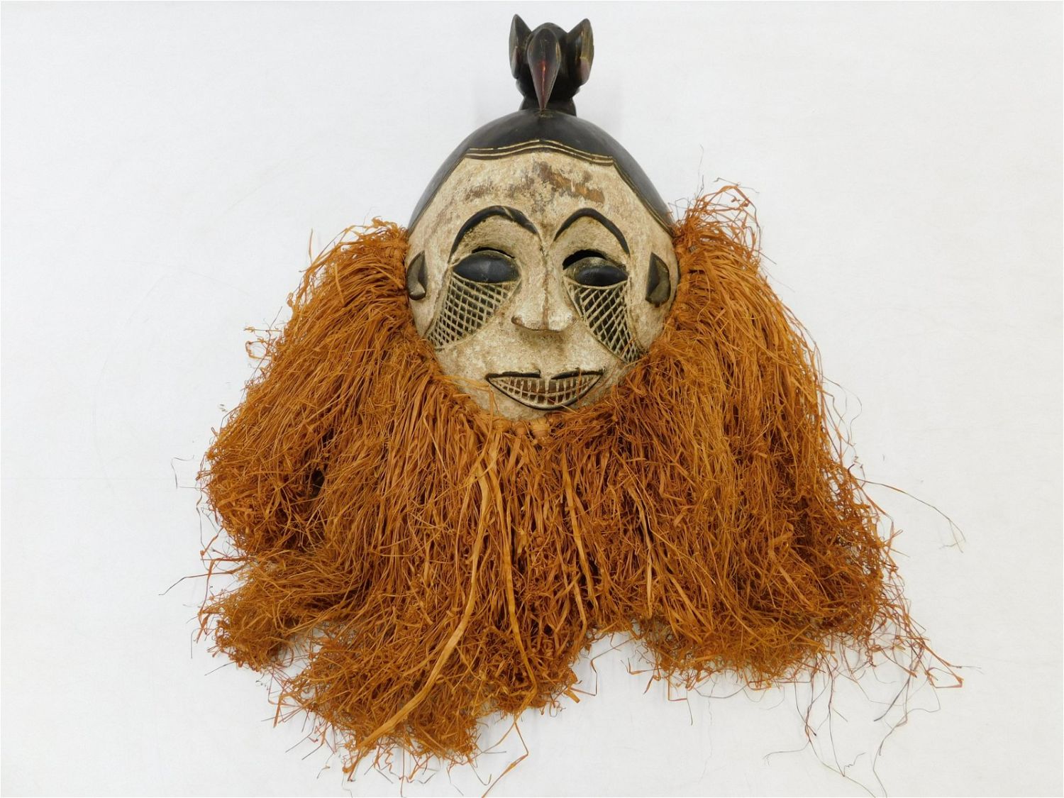 African Tribal Mask. Hand Painted – Shows some wear on forehead. Has straw beard decorationm. Measures 21" tall x 14" wide x 7" deep. Has wear consistent with age. Any questions, contact us. All invoices must be paid within 24 hours of the sale. There are 3 Shipping Options. Please read the Terms of Sale and Shipping Options in the Terms. If you don’t read the terms, you will be upset because you don’t know what is happening. Local pickups are at our Monmouth Junction location on Thursday, Friday, Saturday and Monday ONLY! All pickups are by appointment only. Any major condition issues will be listed in the description. Please read the terms for full information.