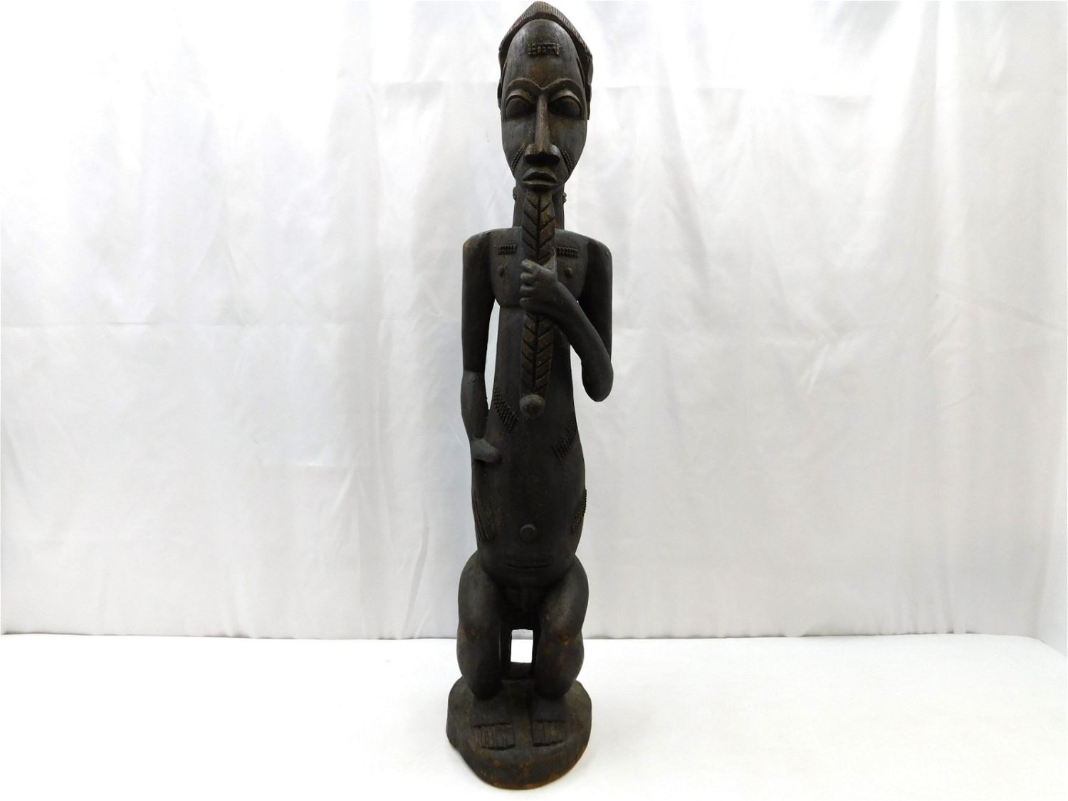 African Tribal Art Oversized Statue. In the manner of Baule Goli. Depicting a seated man. Measures 39" tall x 9" wide x 9" deep. Has wear consistent with age. Any questions, contact us. All invoices must be paid within 24 hours of the sale. There are 3 Shipping Options. Please read the Terms of Sale and Shipping Options in the Terms. If you don’t read the terms, you will be upset because you don’t know what is happening. Local pickups are at our Monmouth Junction location on Thursday, Friday, Saturday and Monday ONLY! All pickups are by appointment only. Any major condition issues will be listed in the description. Please read the terms for full information.