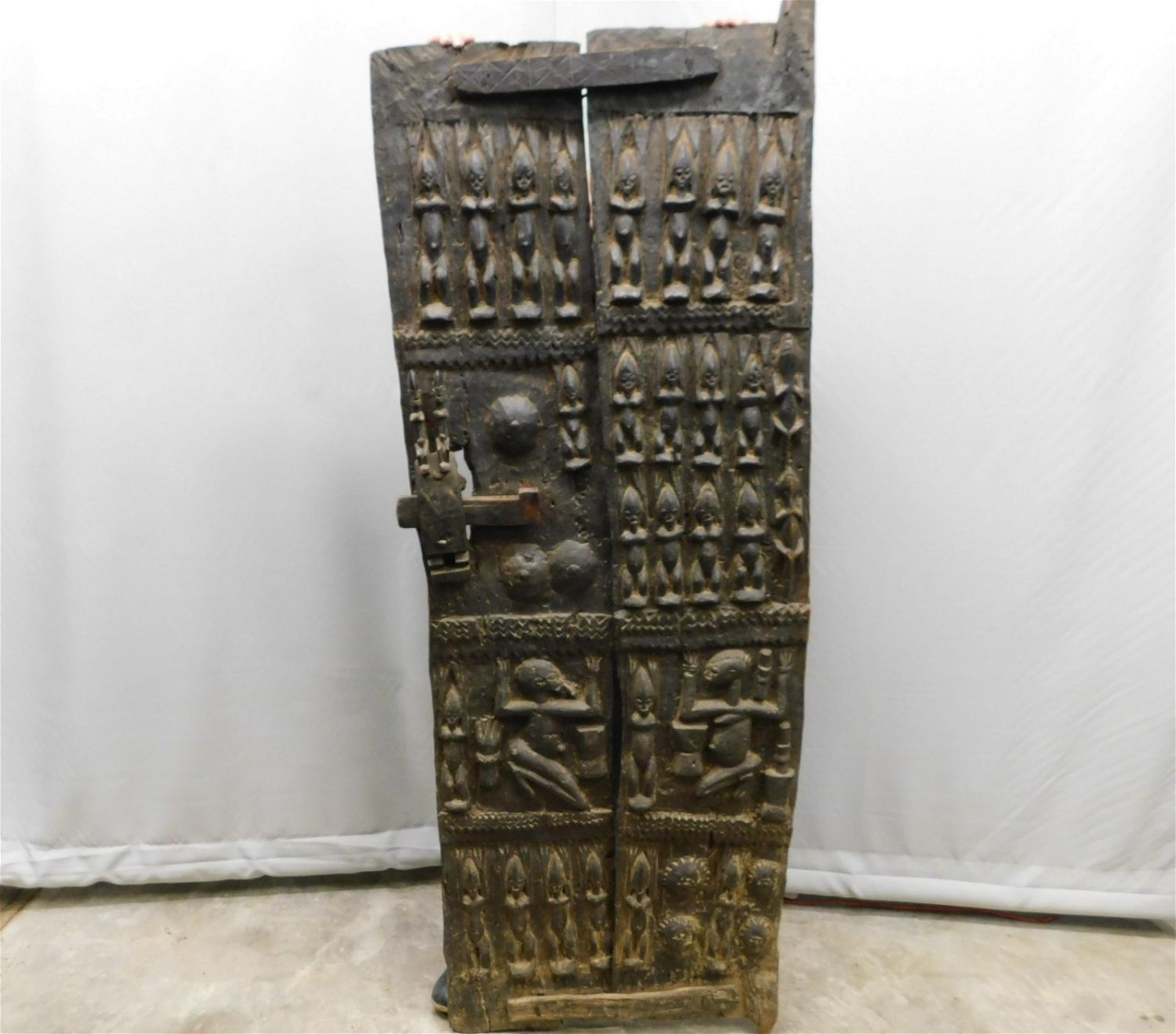 African Tribal Art Inspired Wooden Door. Measures Has wear consistent with age. measures 74 inches tall, 27 inches wide by 4 inches deep. Any questions, contact us. All invoices must be paid within 24 hours of the sale. There are 3 Shipping Options. Please read the Terms of Sale and Shipping Options in the Terms. If you don’t read the terms, you will be upset because you don’t know what is happening. Local pickups are at our Monmouth Junction location on Thursday, Friday, Saturday and Monday ONLY! All pickups are by appointment only. Any major condition issues will be listed in the description. Please read the terms for full information.