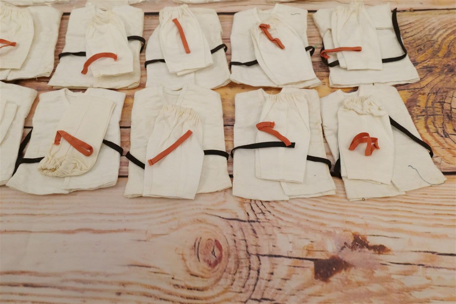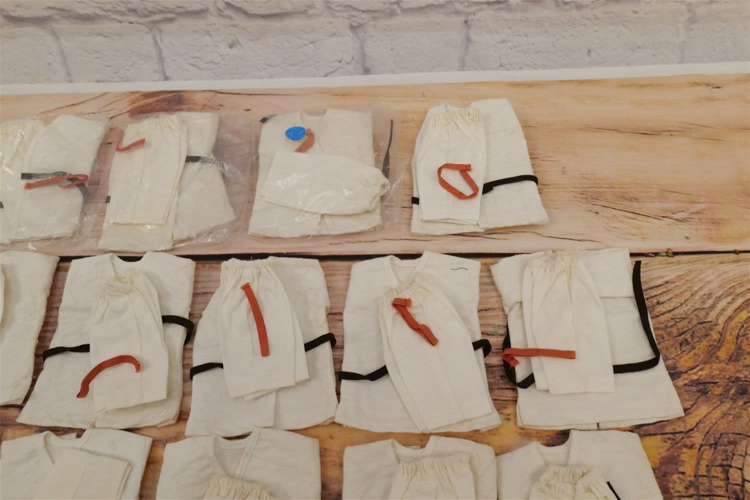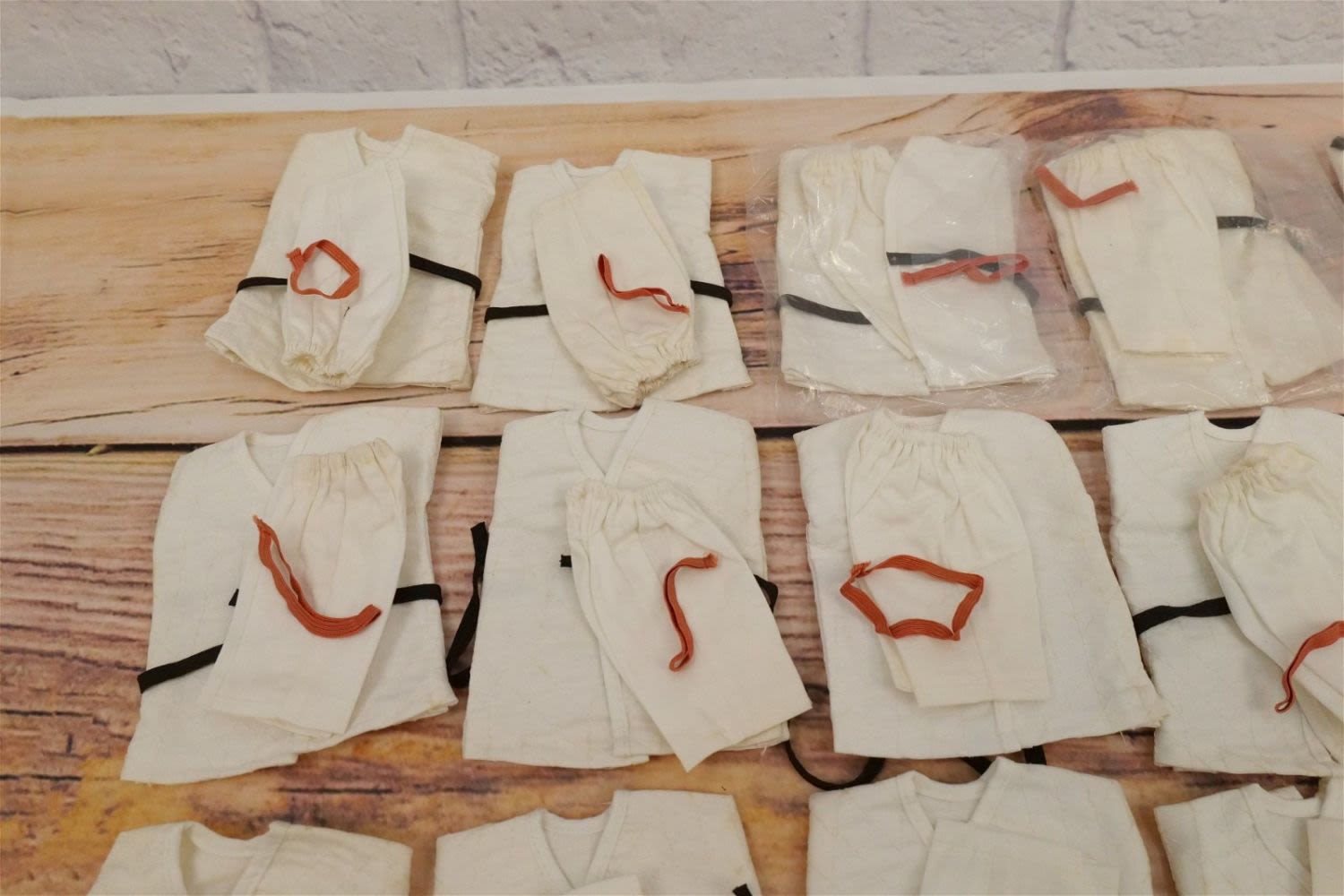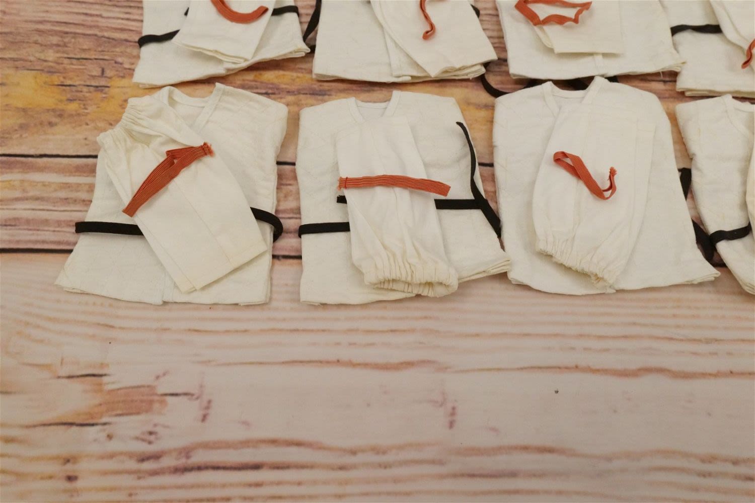 Lot of 20 James Bond Odd Job Karate Outfits by AC Gilbert Co. Japan. The outfits are complete. Some minor light discoloration present on a couple sets. All invoices must be paid within 24 hours of the sale. We offer multiple shipping options, please read the terms as they have changed. We also offer Pick-Ups Thursday, Friday, Saturday, and Monday immediately following the sale. BY APPOINTMENT ONLY. PLEASE READ THE NEW TERMS!!!