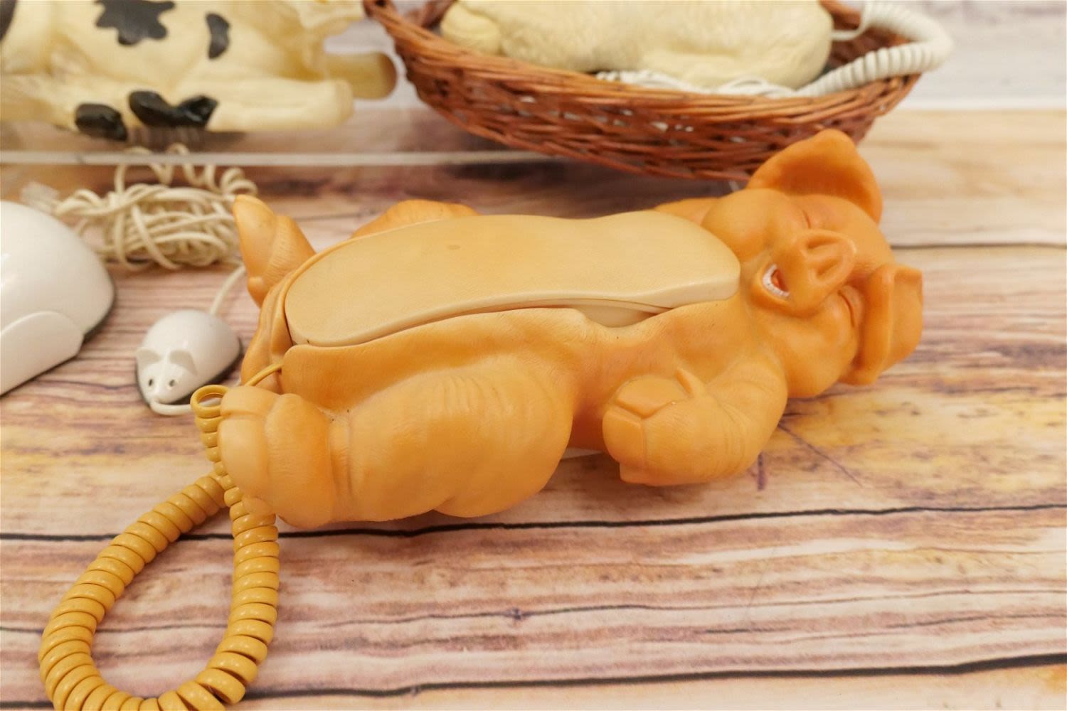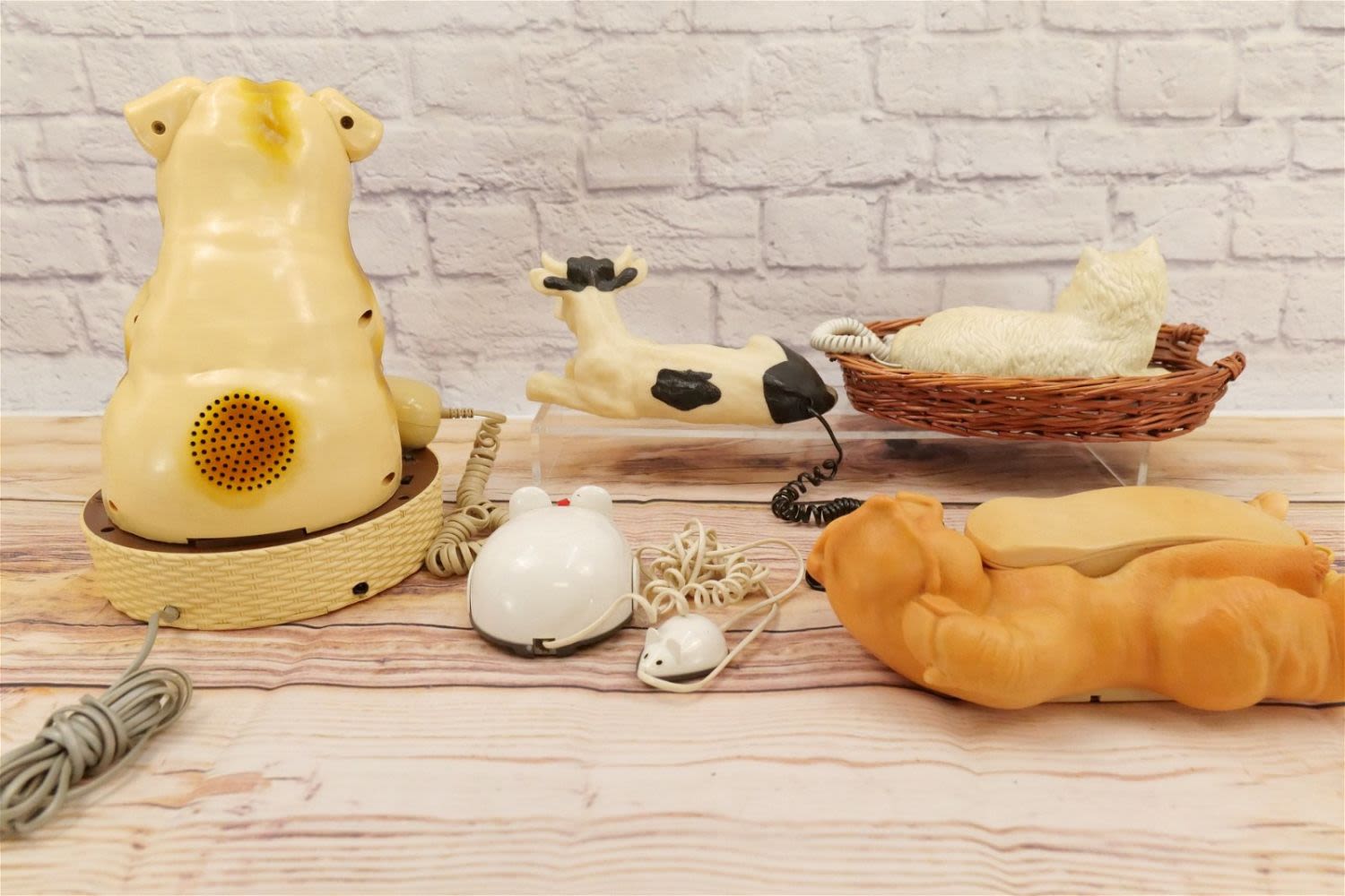 Lot of 5 Animal Designed Novelty Telephones including Lounging Pig, Cat in Bed, Mouse, Fido-Phone, and Cow. Largest measures 12.5" tall x 10" wide. This Collection was displayed in the house and all items are untested. All invoices must be paid within 24 hours of the sale. We offer multiple shipping options, please read the terms as they have changed. We also offer Pick-Ups Thursday, Friday, Saturday, and Monday immediately following the sale. BY APPOINTMENT ONLY. PLEASE READ THE NEW TERMS!!!