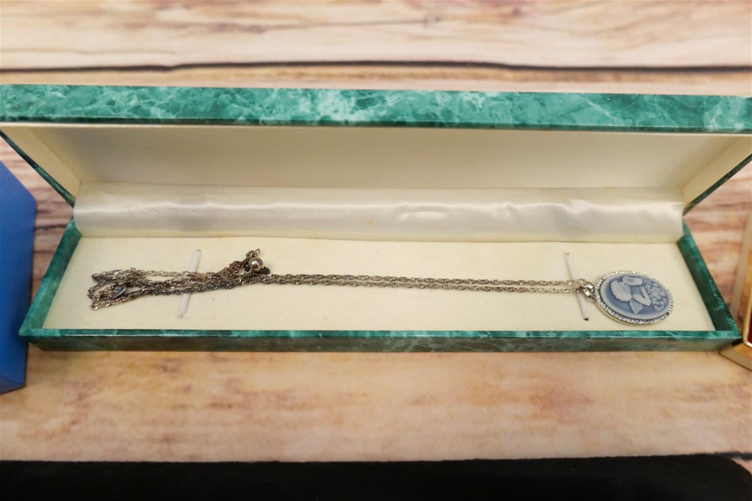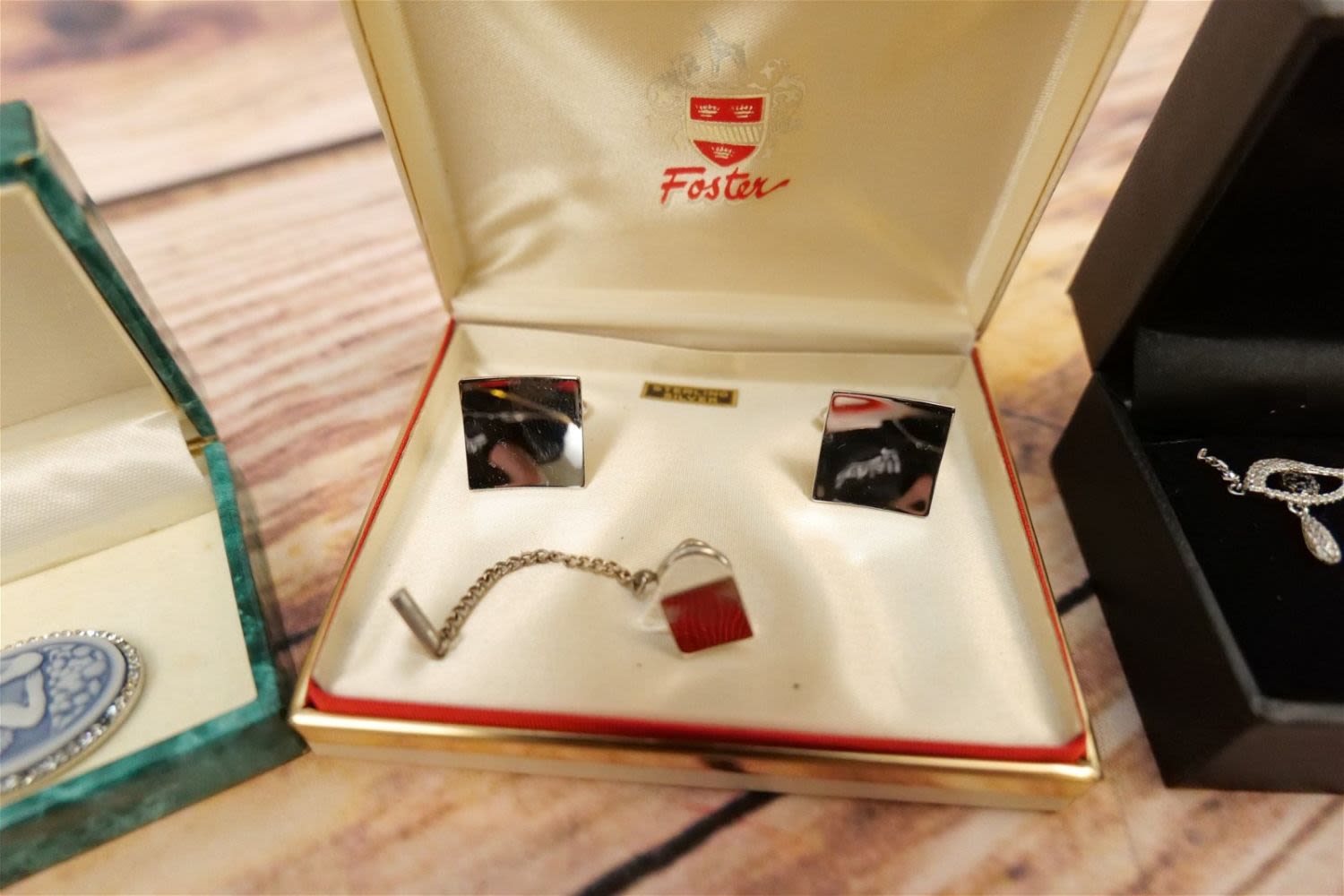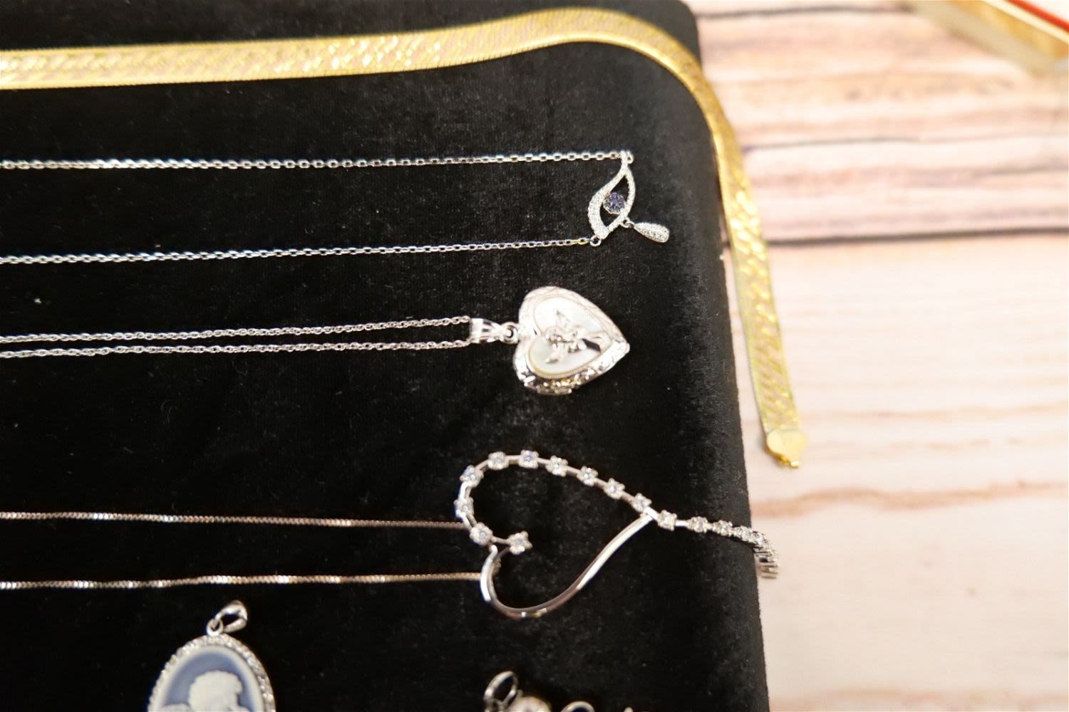 Lot of Sterling Jewelry including Magnetic Necklace Clasps, Angel Cameo, Pair of Men’s Cuff Links and Tie Bar, Evil Eye Pieces, Angel Pendants, Scrap Ring, and Herringbone Necklace. All invoices must be paid within 24 hours of the sale. We offer multiple shipping options, please read the terms as they have changed. We also offer Pick-Ups Friday, Saturday, and Monday immediately following the sale. BY APPOINTMENT ONLY. PLEASE READ THE NEW TERMS!!!