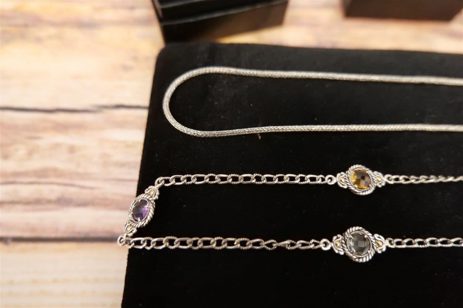 Lot of Sterling and Gold Accent Jewelry including 2 Michael Anthony Crosses – including Relic of Cave of Nativity Necklace, Elephant Pendant, Rope Style Necklace, Chain with Various Colored Stones and Ring with Blue Stones. All invoices must be paid within 24 hours of the sale. We offer multiple shipping options, please read the terms as they have changed. We also offer Pick-Ups Friday, Saturday, and Monday immediately following the sale. BY APPOINTMENT ONLY. PLEASE READ THE NEW TERMS!!!