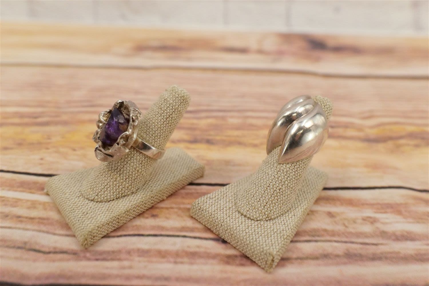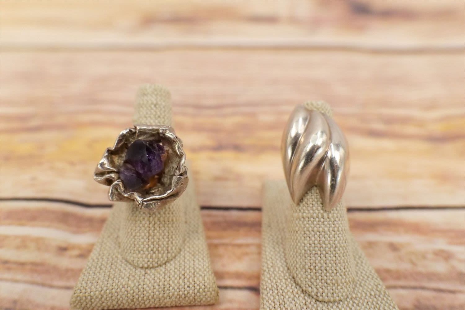 Lot of 2 Modern Style Sterling Silver Rings including Solid Sterling marked Mexico – Size 5 and Nest Style with 2 Raw Amethyst Stones – marked Denmark – Size 8. All invoices must be paid within 24 hours of the sale. We offer multiple shipping options, please read the terms as they have changed. We also offer Pick-Ups Friday, Saturday, and Monday immediately following the sale. BY APPOINTMENT ONLY. PLEASE READ THE NEW TERMS!!!