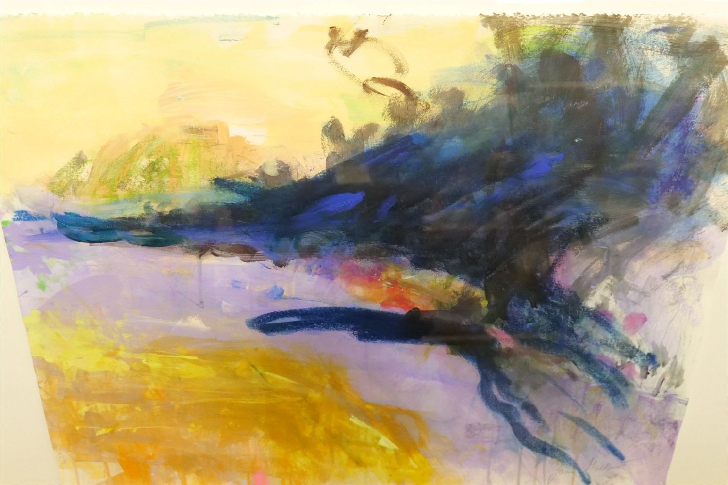 Mid Century Modern Abstract Watercolor Painting by Artist Joan Goldsmith (1930-2019). Signed lower right. Framed in Shadowbox style frame. Measures 22" tall x 29.5" wide. All invoices must be paid within 24 hours of the sale. We offer multiple shipping options, please read the terms as they have changed. We also offer Pick-Ups Thursday, Friday, Saturday, and Monday immediately following the sale. BY APPOINTMENT ONLY. PLEASE READ THE NEW TERMS!!!