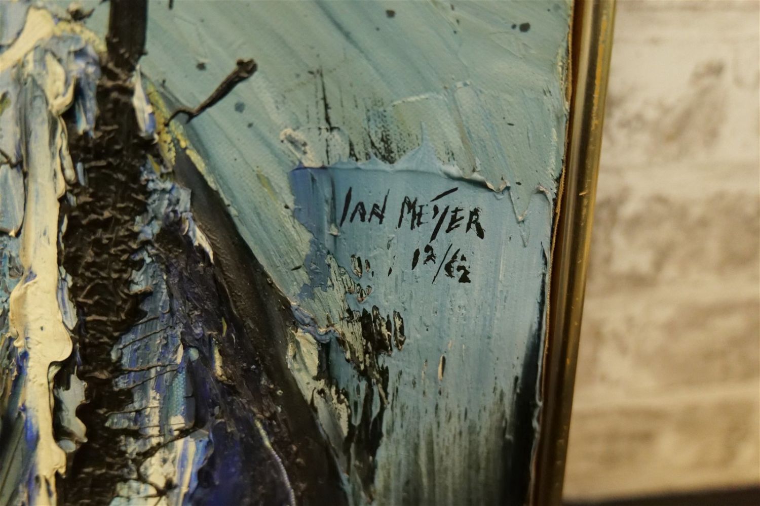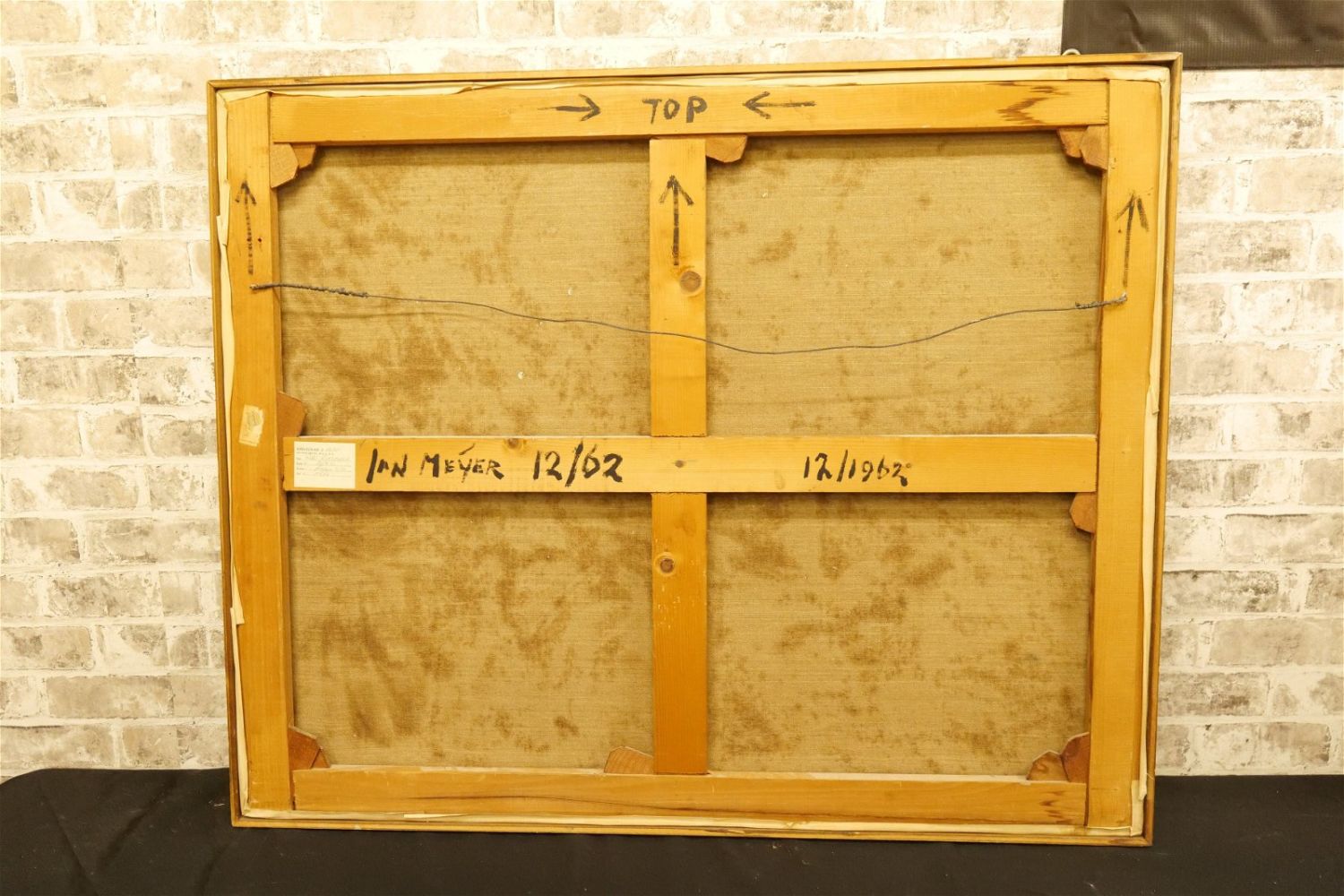 Mid Century Modern Abstract Oil on Canvas by Ian Meyer (1927-1995). Signed Lower Right. Dated 12/1962. Also signed on stretcher. Framed. Measures 32.5" tall x 40.25" wide. All invoices must be paid within 24 hours of the -sale. We offer multiple shipping options, please read the terms as they have changed. We also offer Pick-Ups Thursday, Friday, Saturday, and Monday immediately following the sale. BY APPOINTMENT ONLY. PLEASE READ THE NEW TERMS!!!