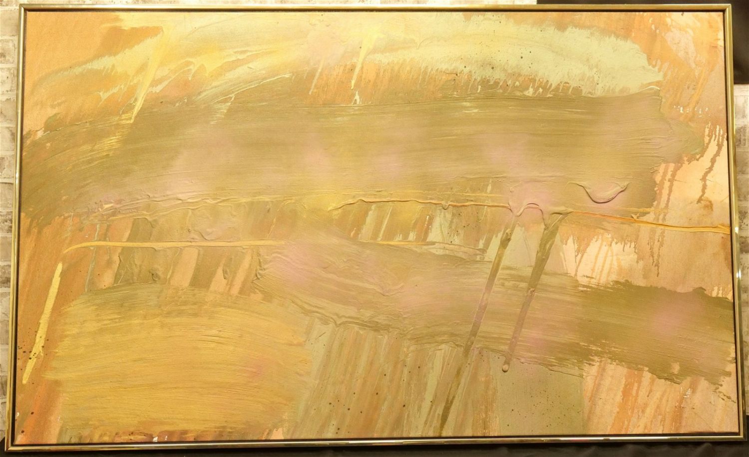 Oversized Abstract Oil on Canvas by Francine Tint (1943-). Entitled "Lady Luck". Dated 1991. Signed on Back. Framed. Measures 40" tall x 65.5" wide. New York-based painter, Francine Tint, has been a working artist since the early 70s. Tint’s artistic career began as a successful costume designer and fashion stylist – working for David Bowie, Ridley Scott, and Entertainment and Sports Programming Network (ESPN), among others. After enduring a series of losses, Tint’s life took on a different meaning with dedication solely to painting. Impediments impede, but they can also inspire. Working as a stylist by day, and a painter by night, Tint developed her own method of large-scale, color-based painting. Tint’s work continues to be shown widely, both nationally and internationally. Her tireless trajectory of artistic experimentation has made her work sought after by both private collectors and institutions. Tint is held in the permanent collection of over 28 museums, including The Neuberger Museum of Art, The Heckscher Museum of Art, The Portland Museum of Art (among the Clement Greenberg Collection), and The Krannert Art Museum, to name a few. Francine Tint continues to paint today and conducts abstract painting workshops at The Art Students League of New York. All invoices must be paid within 24 hours of the sale. We offer multiple shipping options, please read the terms as they have changed. We also offer Pick-Ups on Thursday, Friday, Saturday, and Monday immediately following the sale. BY APPOINTMENT ONLY. PLEASE READ THE NEW TERMS!!!