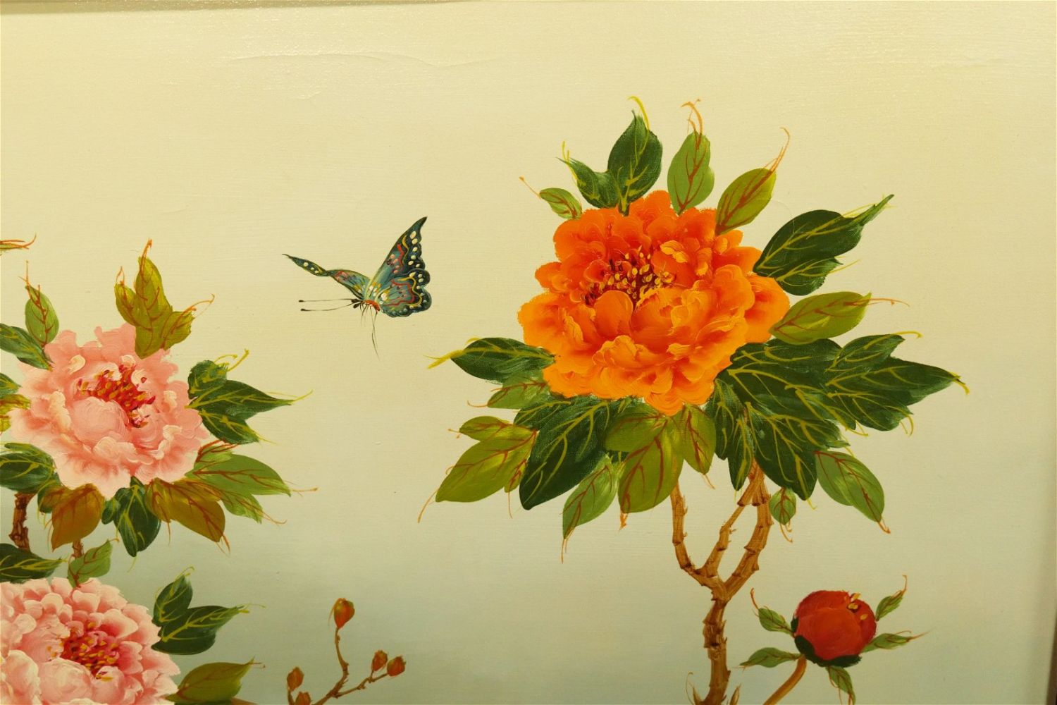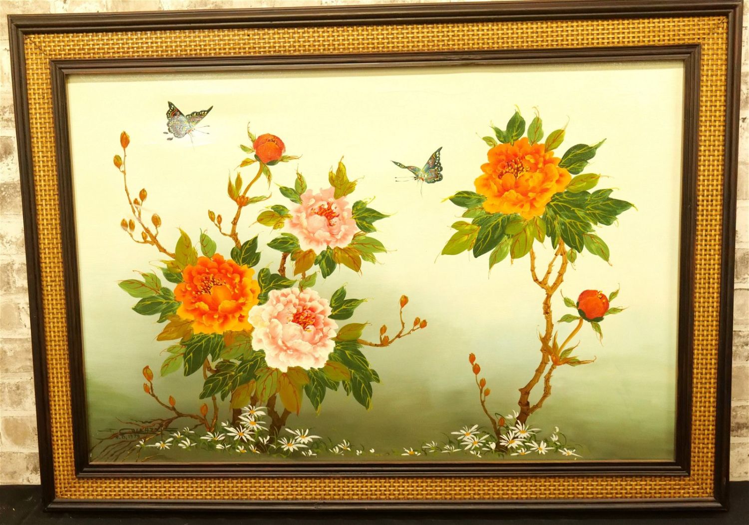 Oil on Canvas by J. Collazzi (1914-1989) depicting Still Life of Flowers with Butterflies. Signed lower left. Measures 31" tall x 42.5" wide. All invoices must be paid within 24 hours of the sale. We offer multiple shipping options, please read the terms as they have changed. We also offer Pick-Ups Thursday, Friday, Saturday, and Monday immediately following the sale. BY APPOINTMENT ONLY. PLEASE READ THE NEW TERMS!!!
