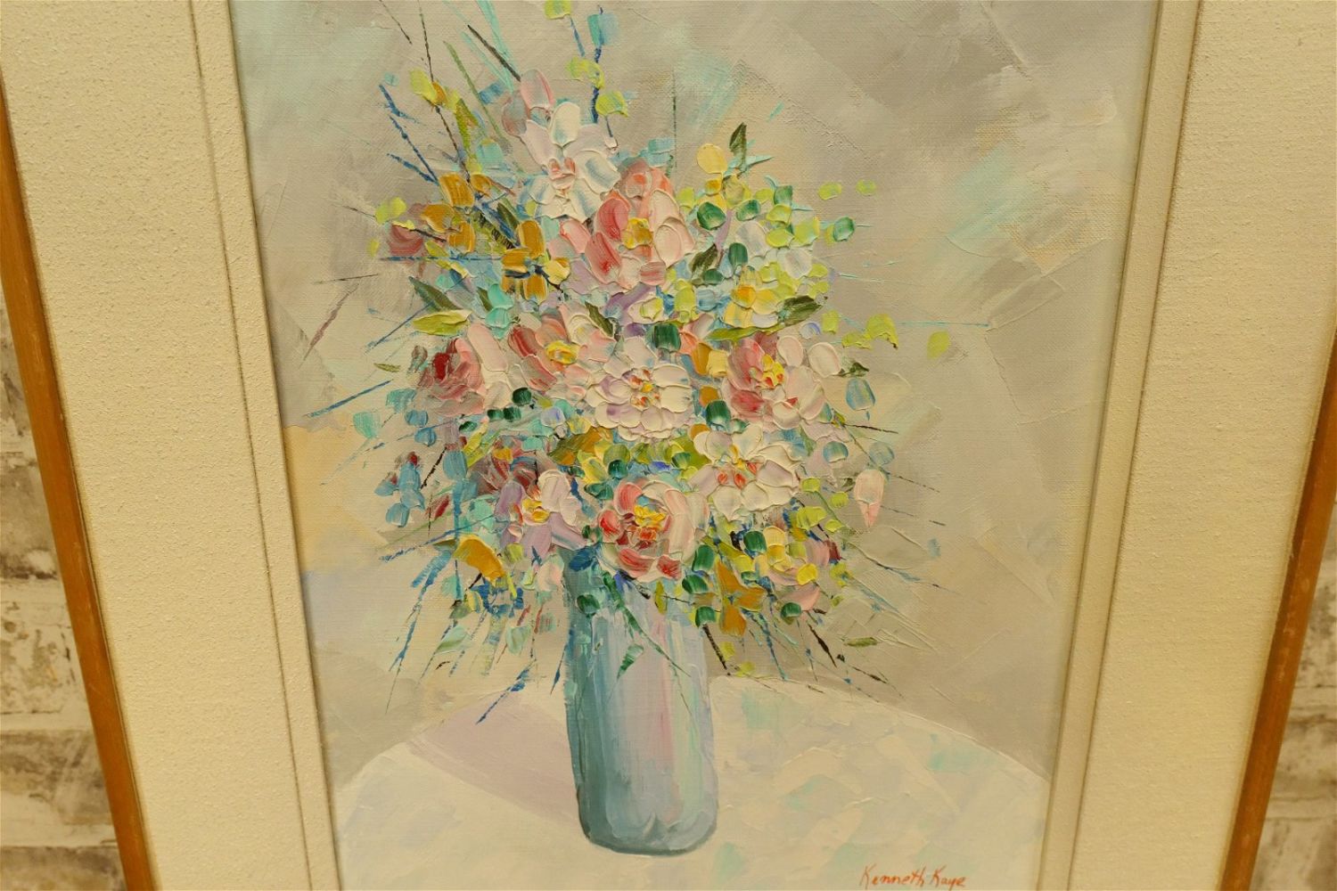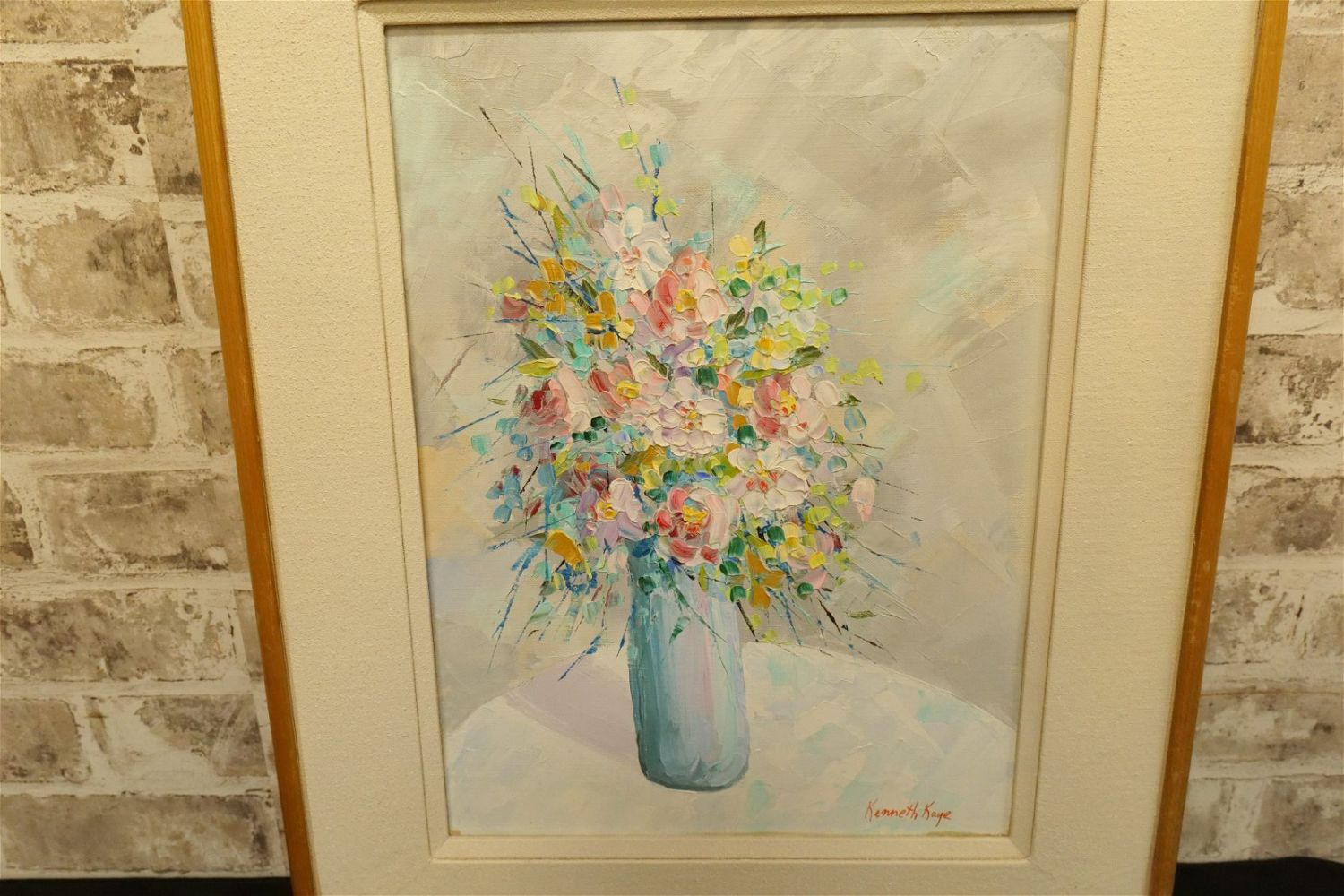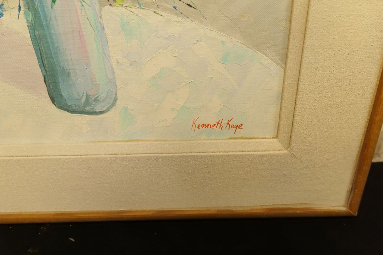 Oil on Canvas by Kenneth Kaye (1951-) Depicting a Still Life Entitled "Springtime Arrangement". Signed lower right. Noted on back of canvas 1985. Kaye was born in New York City in 1951 and grew up on Long Island, near the Great South Bay. He studied drawing and design at Arizona State University, and architecture at the City College of New York School of Environmental Design. Measures 22" tall x 18" wide. All invoices must be paid within 24 hours of the sale. We offer multiple shipping options, please read the terms as they have changed. We also offer Pick-Ups Thursday, Friday, Saturday, and Monday immediately following the sale. BY APPOINTMENT ONLY. PLEASE READ THE NEW TERMS!!!