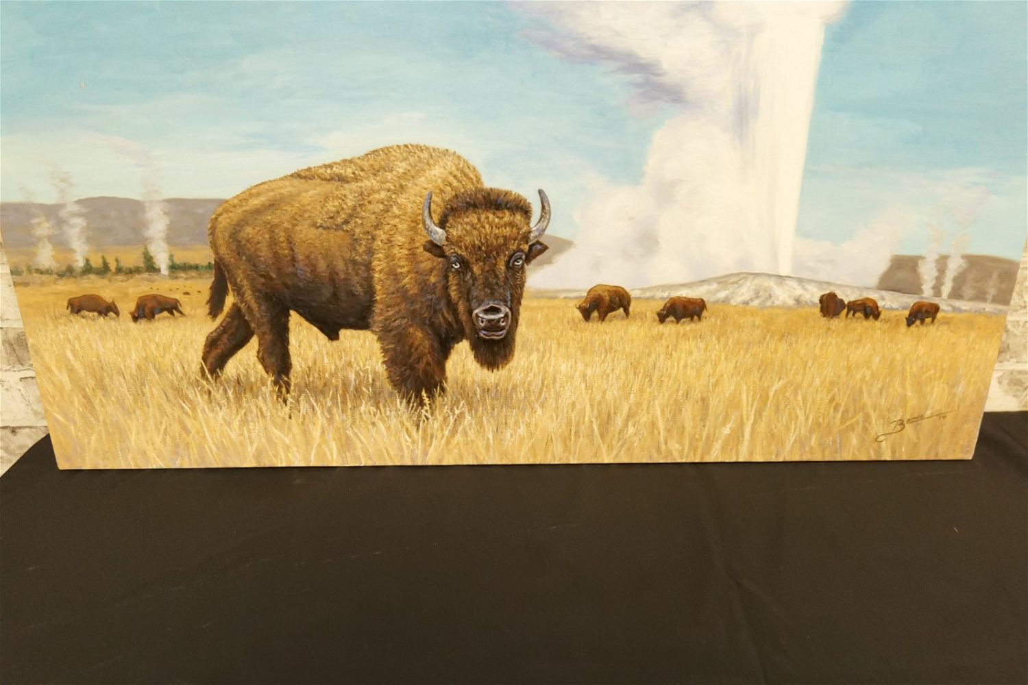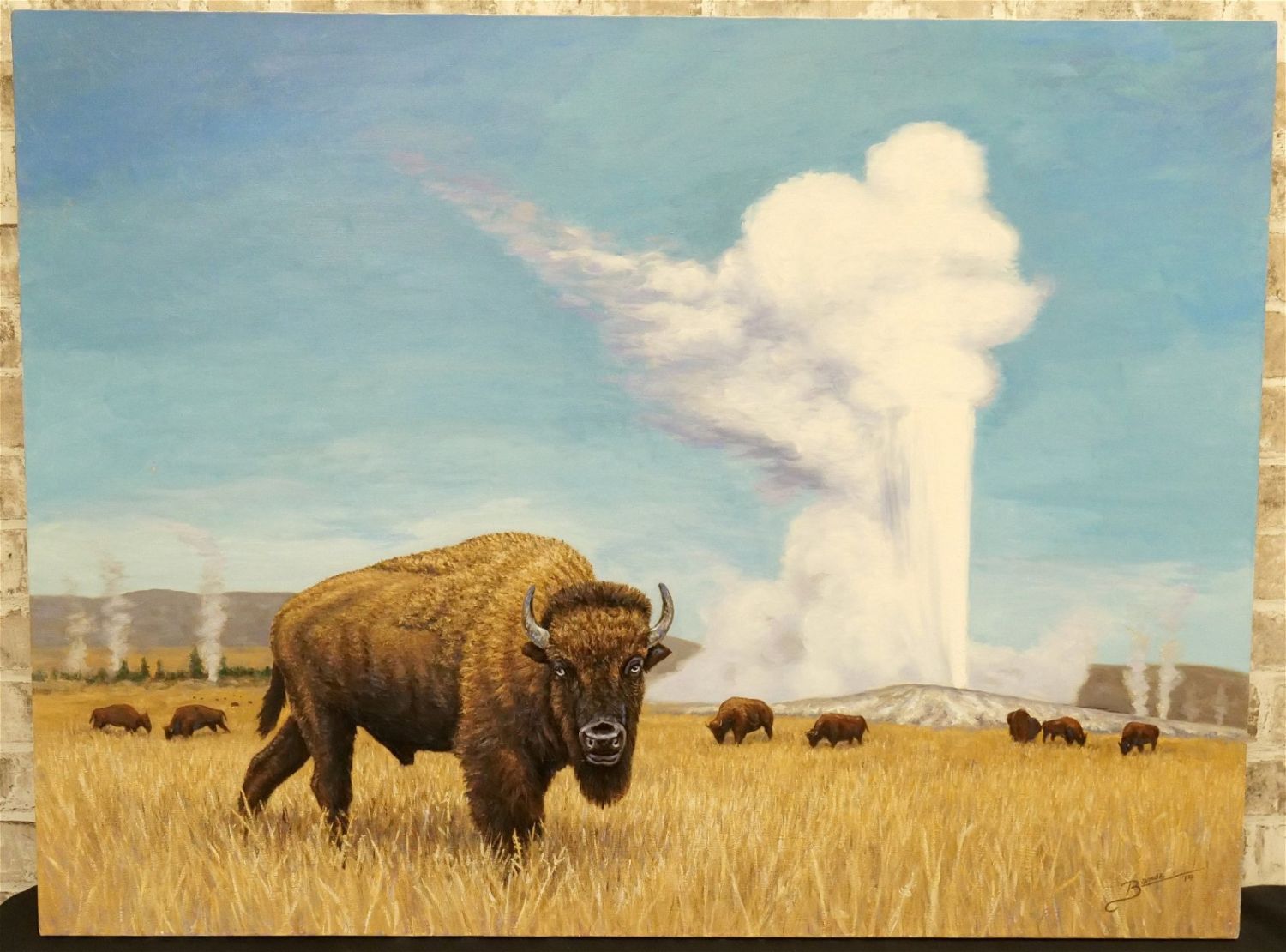 Original Oil on Canvas by Glen Fortune Banse (1948-2018). Depicting Buffalo’s in Yellowstone Park. Signed Lower Right. Dated ’14. Measures 30" tall x 40". wide. Unframed. Glen Fortune Banse (1948-2018) (aka Banse, Wayne Howell, Etienne and many other names) was born in Camden, New Jersey in 1948. He attended Ottawa University, Kansas State and The New School For Social Research in New York City, and has been a professional artist for close to 50 years. He was a co-partner in 3 Art Publishing businesses which specialized in Fine Art Signed and Numbered Limited Edition Lithography, Etchings and other fine art mediums. While publishing his own work, he was also the Art Director of all three companies and had the pleasure of working with, directing, and instructing hundreds of great nationally and internationally known artists such as Peter Max, Will Moses, John Pitre, Sarah Churchill (Daughter of Winston Churchill), Gerald Lubeck, Yanni Posnikov, and the world-famous Mr. Blackwell of Hollywood’s 10 Worst Dressed List presented each year. Throughout the 1990’s Glen was Personal Assistant, Confidant and Agent to Television Pioneer and Legend "Buffalo Bob" Smith of Howdy Doody fame, spending many years crisscrossing America with the Iconic Duo. Glen more recently focused his energy on Oils, presenting a well diversified subject matter. His works and portraits have been commissioned by the state of New Jersey, with pieces on permanent display in various State Buildings throughout the Garden State. His Art can be found in museums, galleries, celebrity collections and other venues through out the world.Provenance: This piece was consigned from the estate of Glen Fortune BanseAll invoices must be paid within 24 hours of the sale. We offer multiple shipping options, please read the terms as they have changed. We also offer Pick-Ups Thursday, Friday, Saturday, and Monday immediately following the sale. BY APPOINTMENT ONLY. PLEASE READ THE NEW TERMS!!!