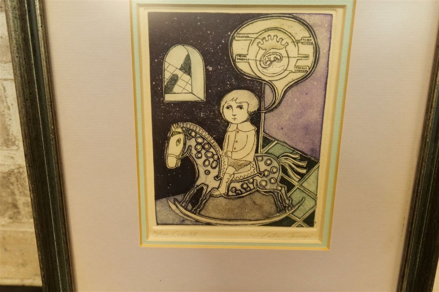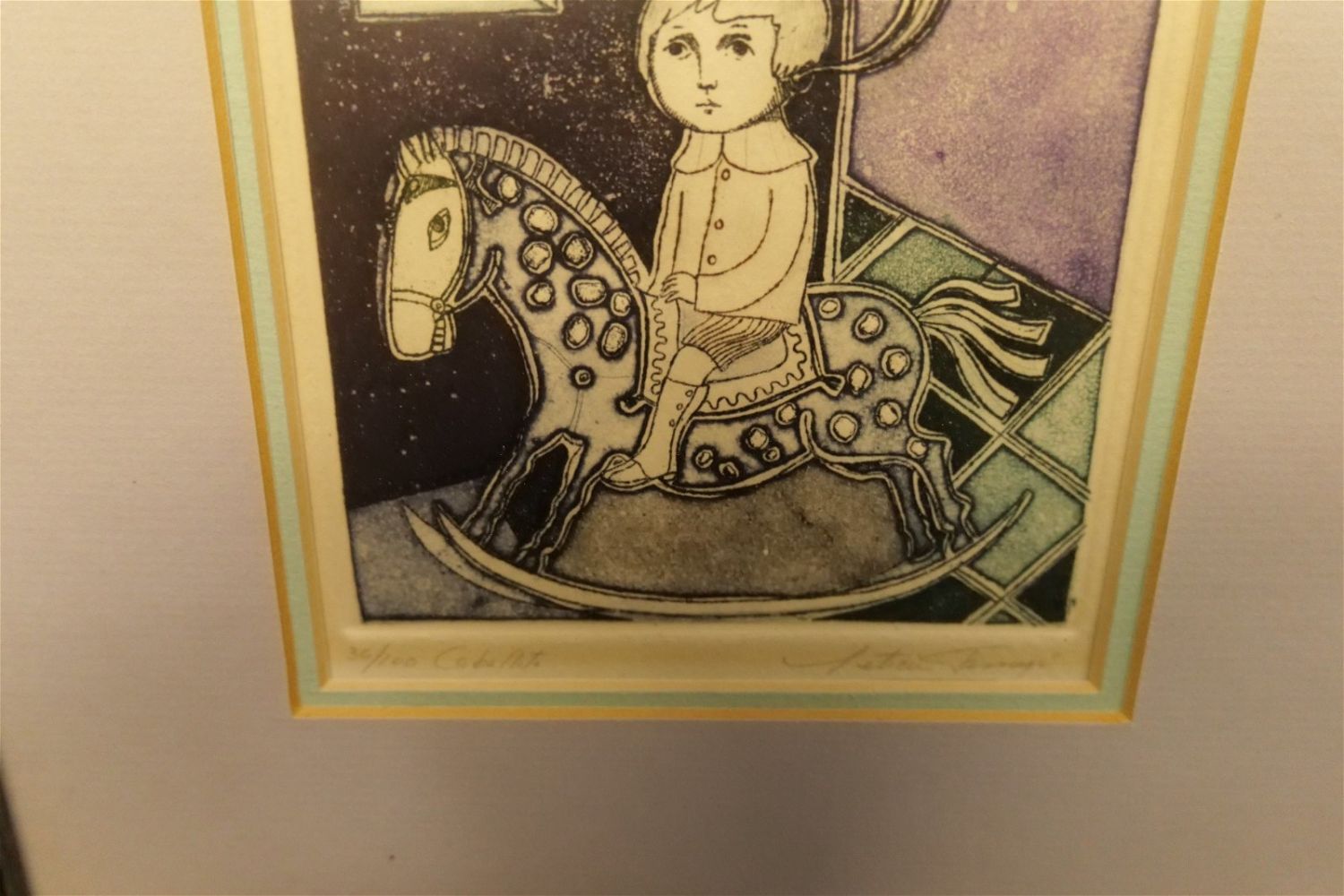 Original Color Etching by Leticia Tarrago (1940-). Entitled "Caballito". Depicting boy on rocking horse thinking. Signed lower right. Numbered 36/100. Measures 13" tall x 11" wide. Leticia Tarrago (Born 1940) is active/lives in Mexico. Leticia Tarrago is known for Painting, engraving. Born in Orizaba, Veracruz, Ms. Tarrago studied at La Esmeraida in Mexico City, where at the age of fourteen she won first prize in the annual student competition staged by the National Institute of Fine Arts. All invoices must be paid within 24 hours of the sale. We offer multiple shipping options, please read the terms as they have changed. We also offer Pick-Ups Thursday, Friday, Saturday, and Monday immediately following the sale. BY APPOINTMENT ONLY. PLEASE READ THE NEW TERMS!!!