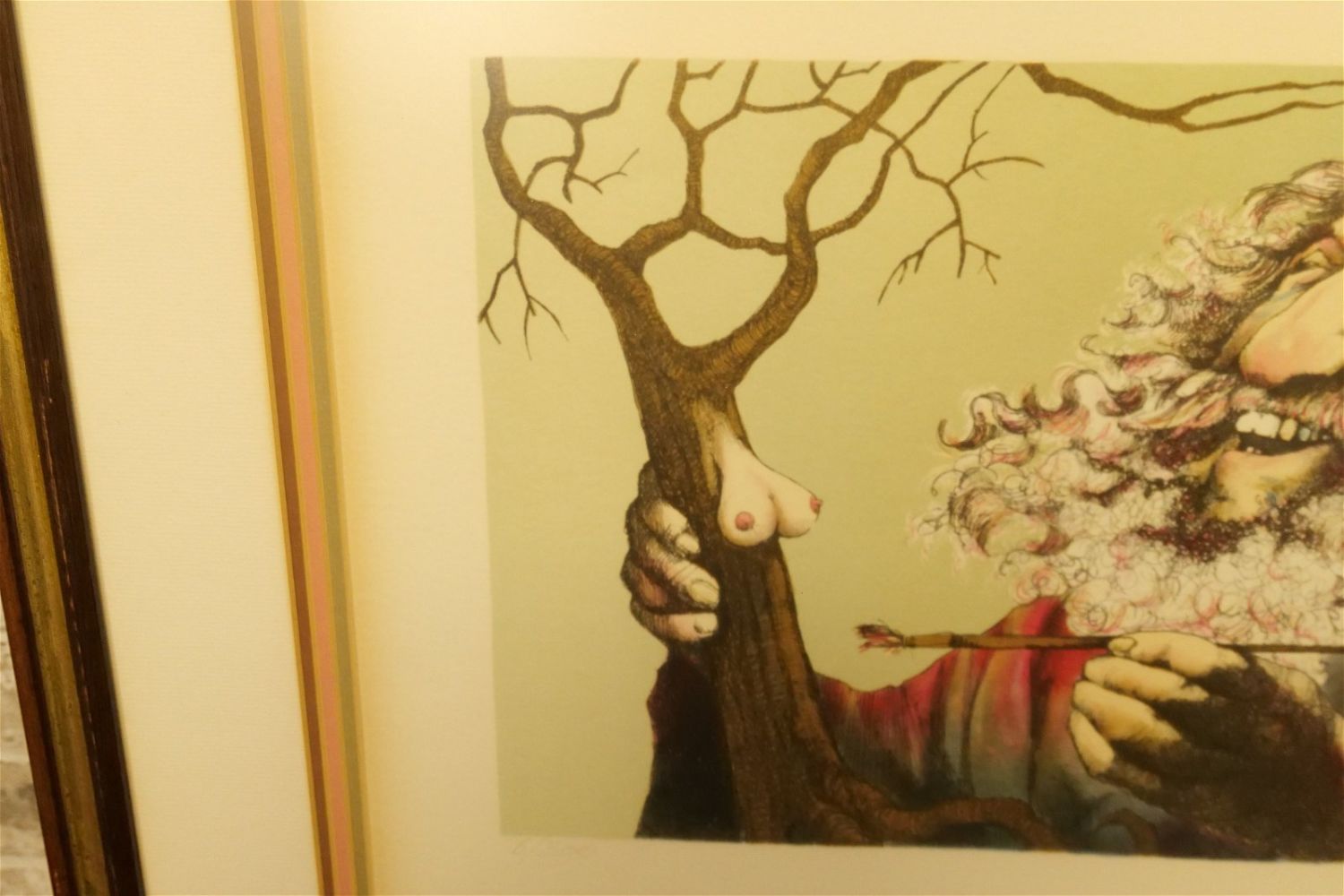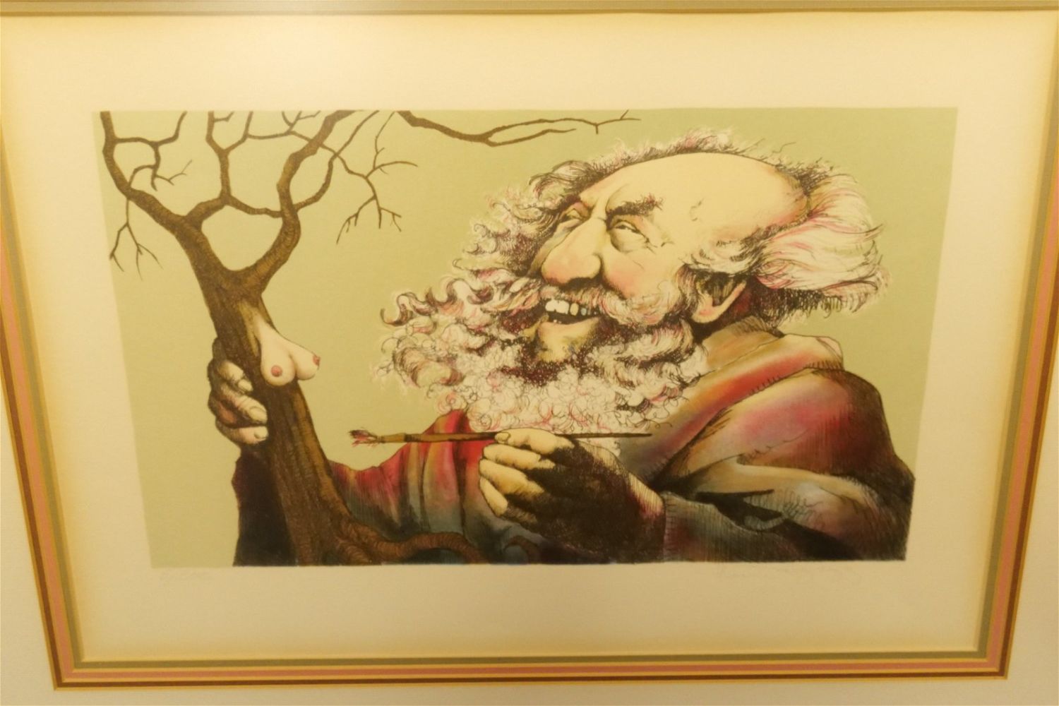 Framed Lithograph by Charles Bragg (1931-2017). Entitled "In the Beginning There Were Mistakes" Signed Lower Right. Numbered 6/300. Measures 23.5" tall x 30" wide. Charles Bragg was born in St. Louis, Missouri in 1931. He was one of America’s "foremost social satire artists." His witty interpretations of human life can even make the toughest art critic smile. Not limiting himself to one artistic medium, Bragg was an accomplished painter and sculptor, receiving numerous awards in both areas including the Gold Medal for the National Society of Illustrators and the Award of Merit from the Art Directors Guild of New York. All invoices must be paid within 24 hours of the sale. We offer multiple shipping options, please read the terms as they have changed. We also offer Pick-Ups Thursday, Friday, Saturday, and Monday immediately following the sale. BY APPOINTMENT ONLY. PLEASE READ THE NEW TERMS!!!