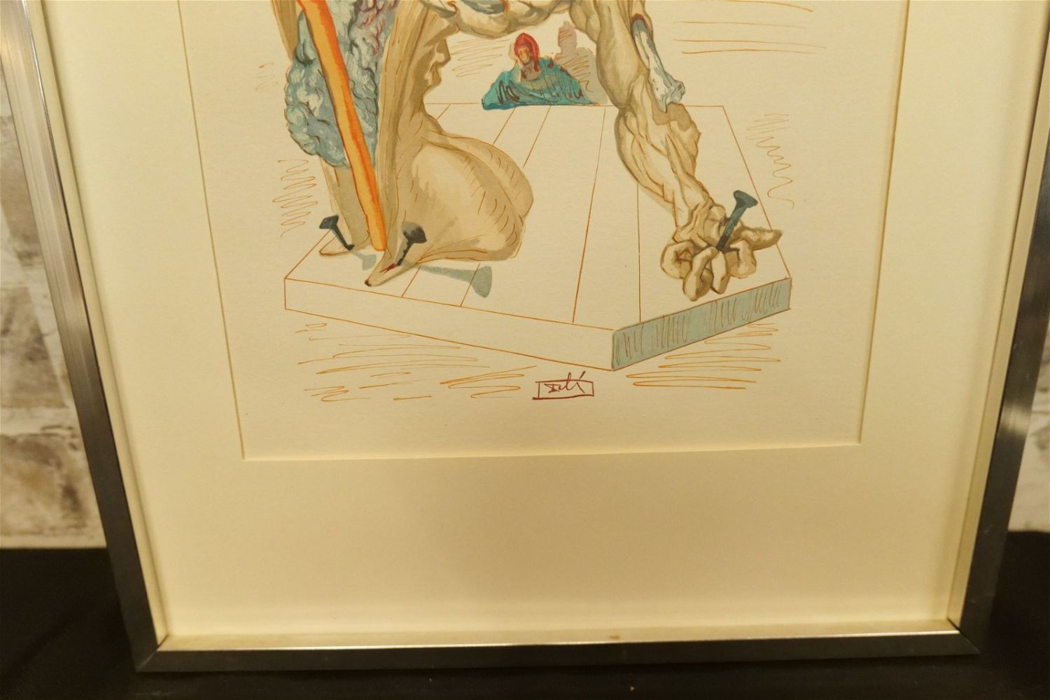 Framed Lithograph by Salvador Dali (1904-1989). From Divine Comedy Series Inferno Canto 28. Measures 16.5" tall x 12.5" wide. Missing glass on front of frame. All invoices must be paid within 24 hours of the sale. We offer multiple shipping options, please read the terms as they have changed. We also offer Pick-Ups Thursday, Friday, Saturday, and Monday immediately following the sale. BY APPOINTMENT ONLY. PLEASE READ THE NEW TERMS!!!