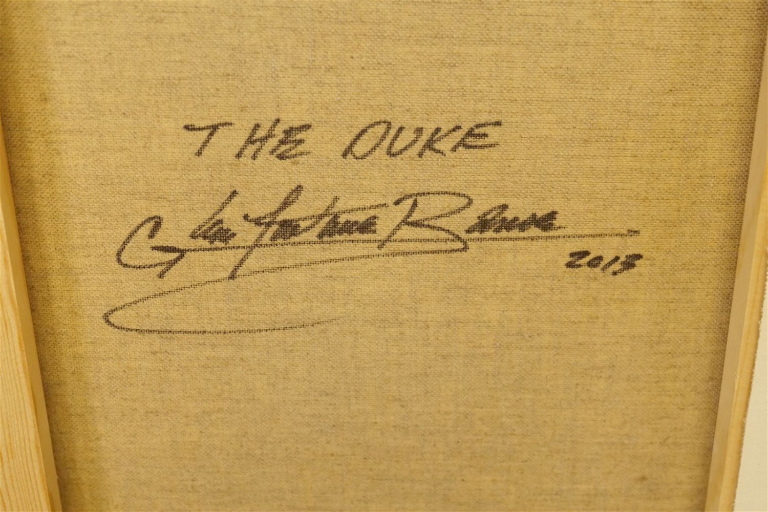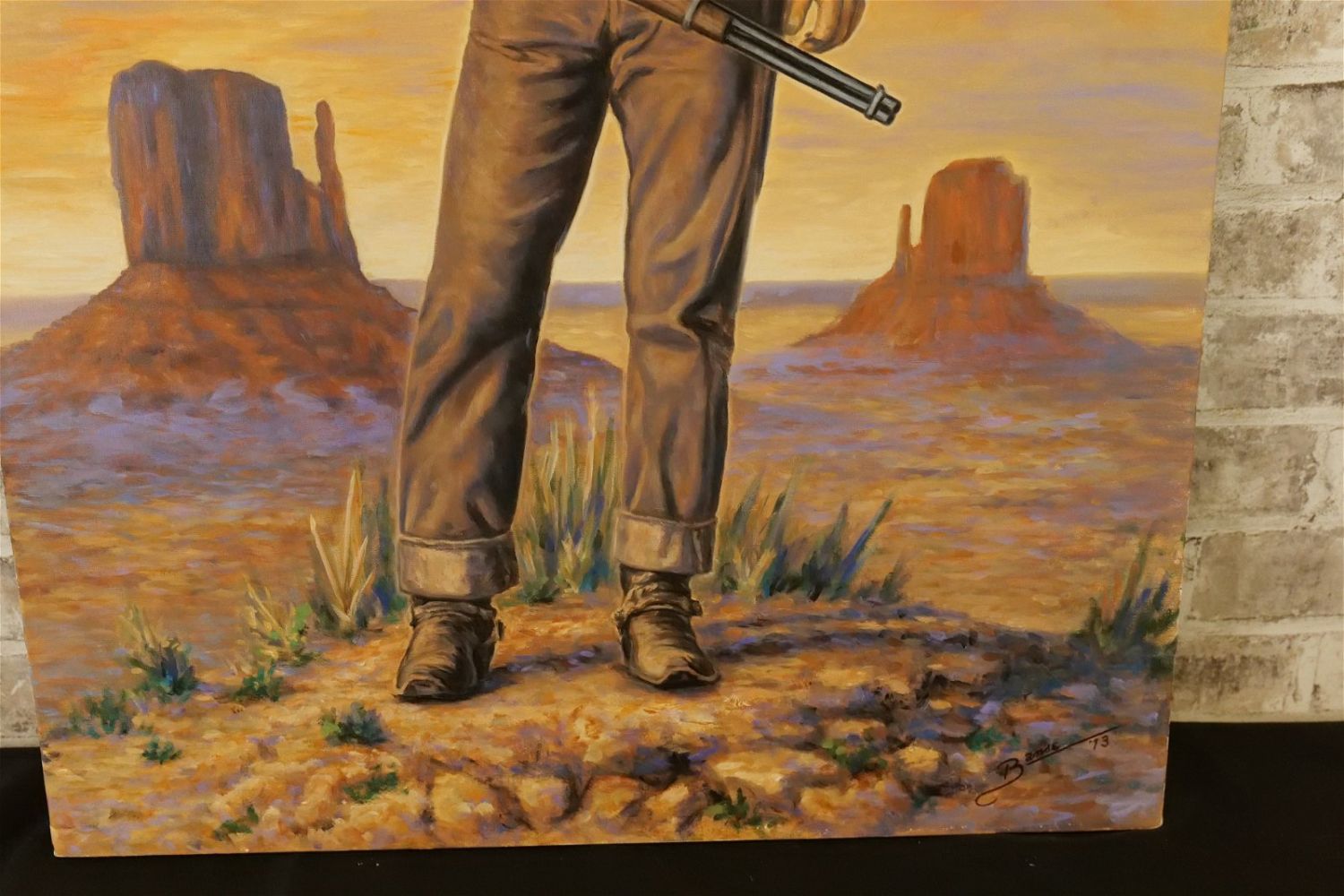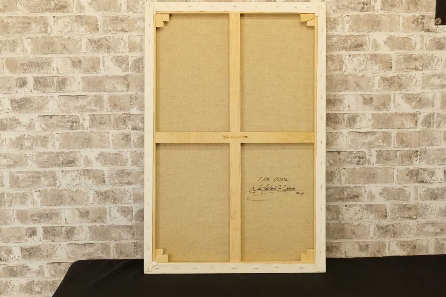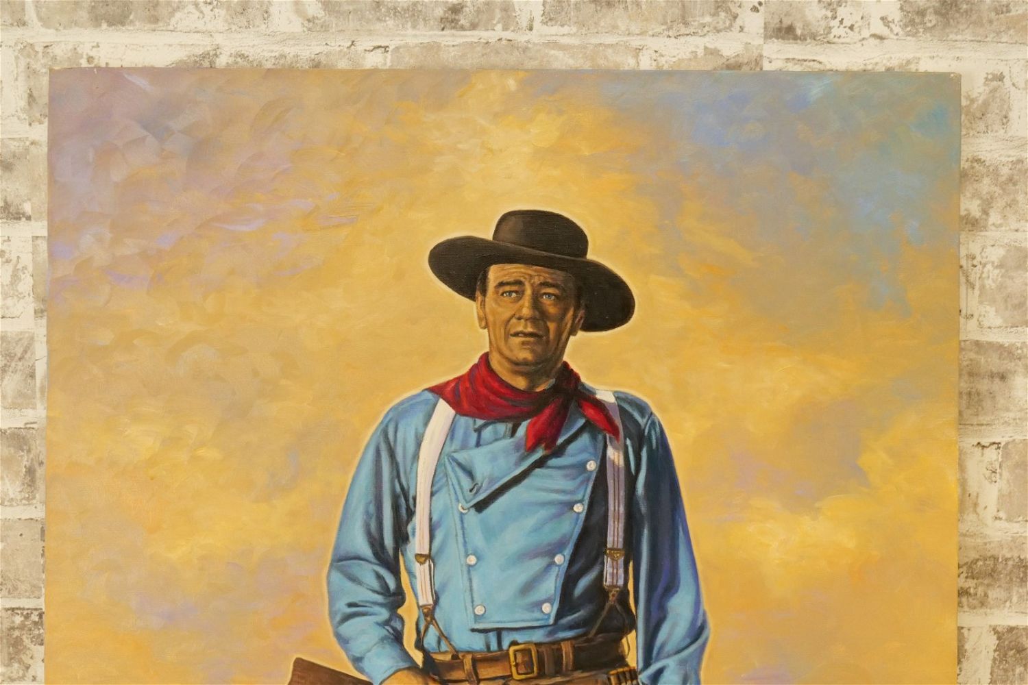 Original Oil on Canvas by Glen Fortune Banse (1948-2018) Entitled "The Duke". Depicting John Wayne. Signed Lower Right. Dated ’13. Also signed and noted on back of canvas. Measures 36" tall x 24". wide. Unframed. Glen Fortune Banse (1948-2018) (aka Banse, Wayne Howell, Etienne and many other names) was born in Camden, New Jersey in 1948. He attended Ottawa University, Kansas State and The New School For Social Research in New York City, and has been a professional artist for close to 50 years. He was a co-partner in 3 Art Publishing businesses which specialized in Fine Art Signed and Numbered Limited Edition Lithography, Etchings and other fine art mediums. While publishing his own work, he was also the Art Director of all three companies and had the pleasure of working with, directing, and instructing hundreds of great nationally and internationally known artists such as Peter Max, Will Moses, John Pitre, Sarah Churchill (Daughter of Winston Churchill), Gerald Lubeck, Yanni Posnikov, and the world-famous Mr. Blackwell of Hollywood’s 10 Worst Dressed List presented each year. Throughout the 1990’s Glen was Personal Assistant, Confidant and Agent to Television Pioneer and Legend "Buffalo Bob" Smith of Howdy Doody fame, spending many years crisscrossing America with the Iconic Duo. Glen more recently focused his energy on Oils, presenting a well diversified subject matter. His works and portraits have been commissioned by the state of New Jersey, with pieces on permanent display in various State Buildings throughout the Garden State. His Art can be found in museums, galleries, celebrity collections and other venues through out the world.Provenance: This piece was consigned from the estate of Glen Fortune BanseAll invoices must be paid within 24 hours of the sale. We offer multiple shipping options, please read the terms as they have changed. We also offer Pick-Ups Thursday, Friday, Saturday, and Monday immediately following the sale. BY APPOINTMENT ONLY. PLEASE READ THE NEW TERMS!!!