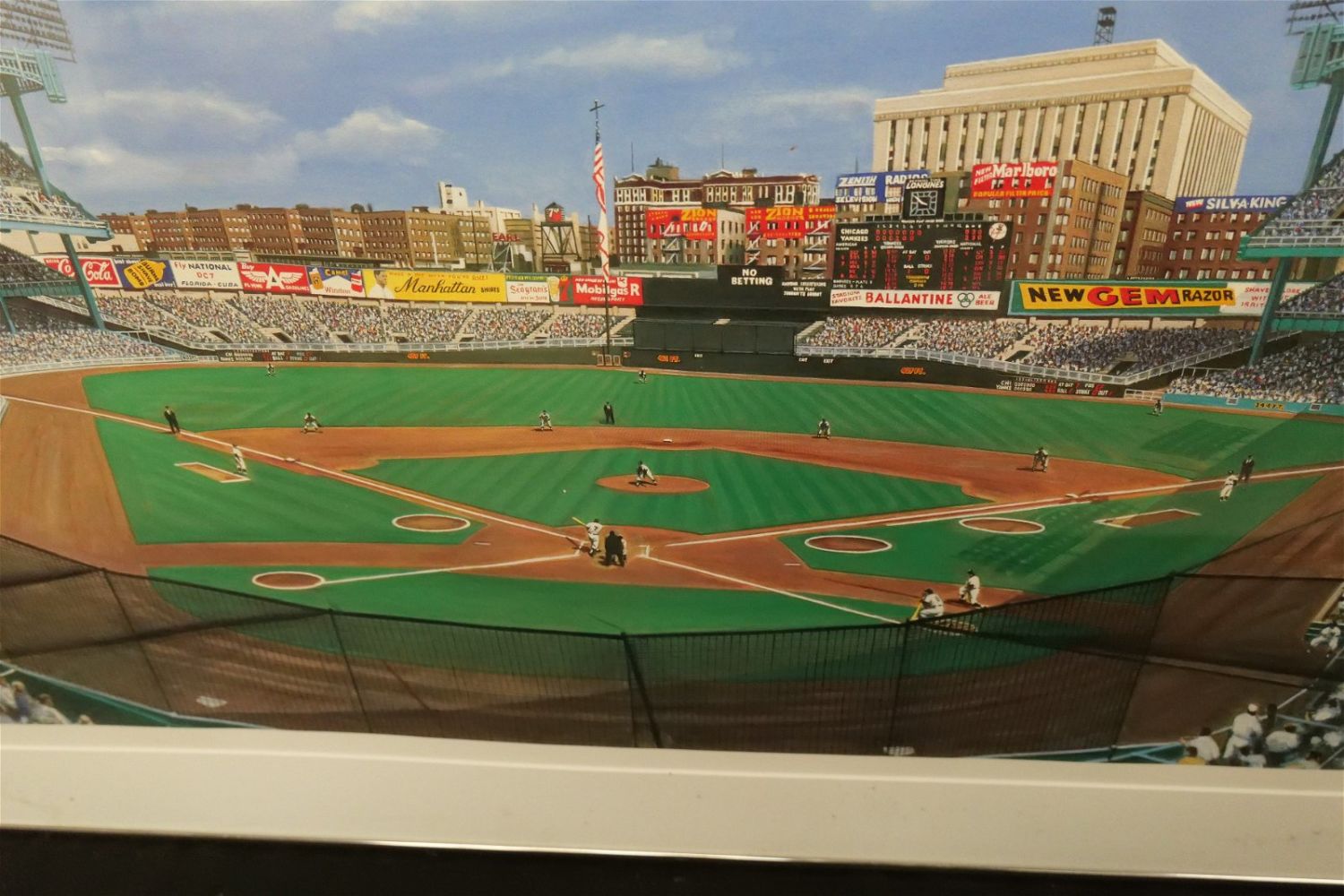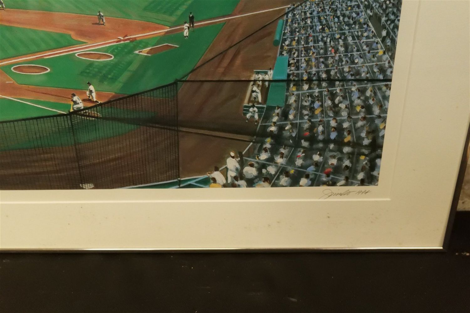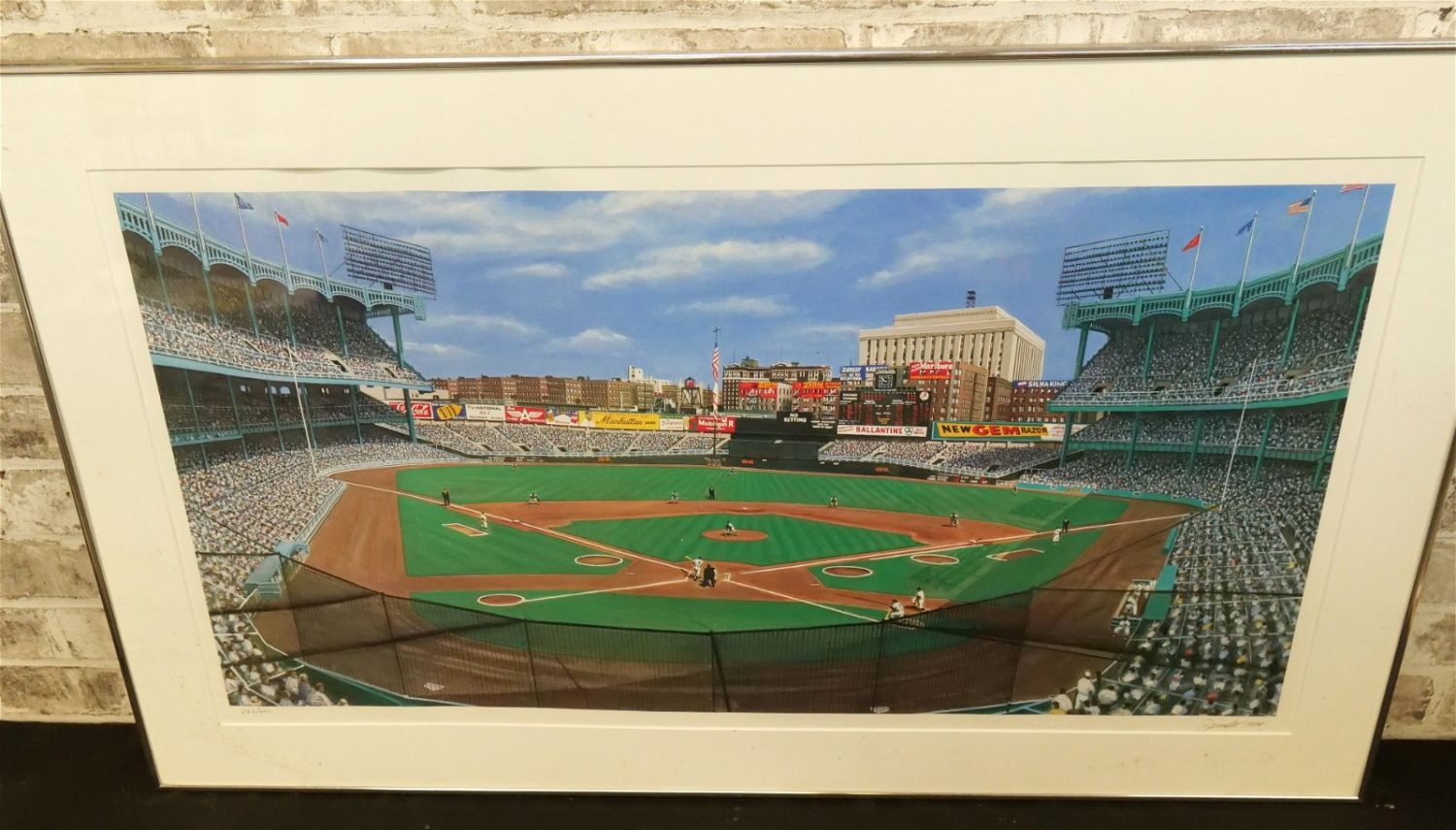 Framed Offset Lithograph by Andy Jurinko. Entitled "Yankee Stadium 1956". Depicting Yankees vs. Chicago. Pencil Signed lower right #263/600. Does show some staining on matte. Could be on the glass on the underside but unsure. Measures 23" tall x 39" wide. All invoices must be paid within 24 hours of the sale. We offer multiple shipping options, please read the terms as they have changed. We also offer Pick-Ups Thursday, Friday, Saturday, and Monday immediately following the sale. BY APPOINTMENT ONLY. PLEASE READ THE NEW TERMS!!!