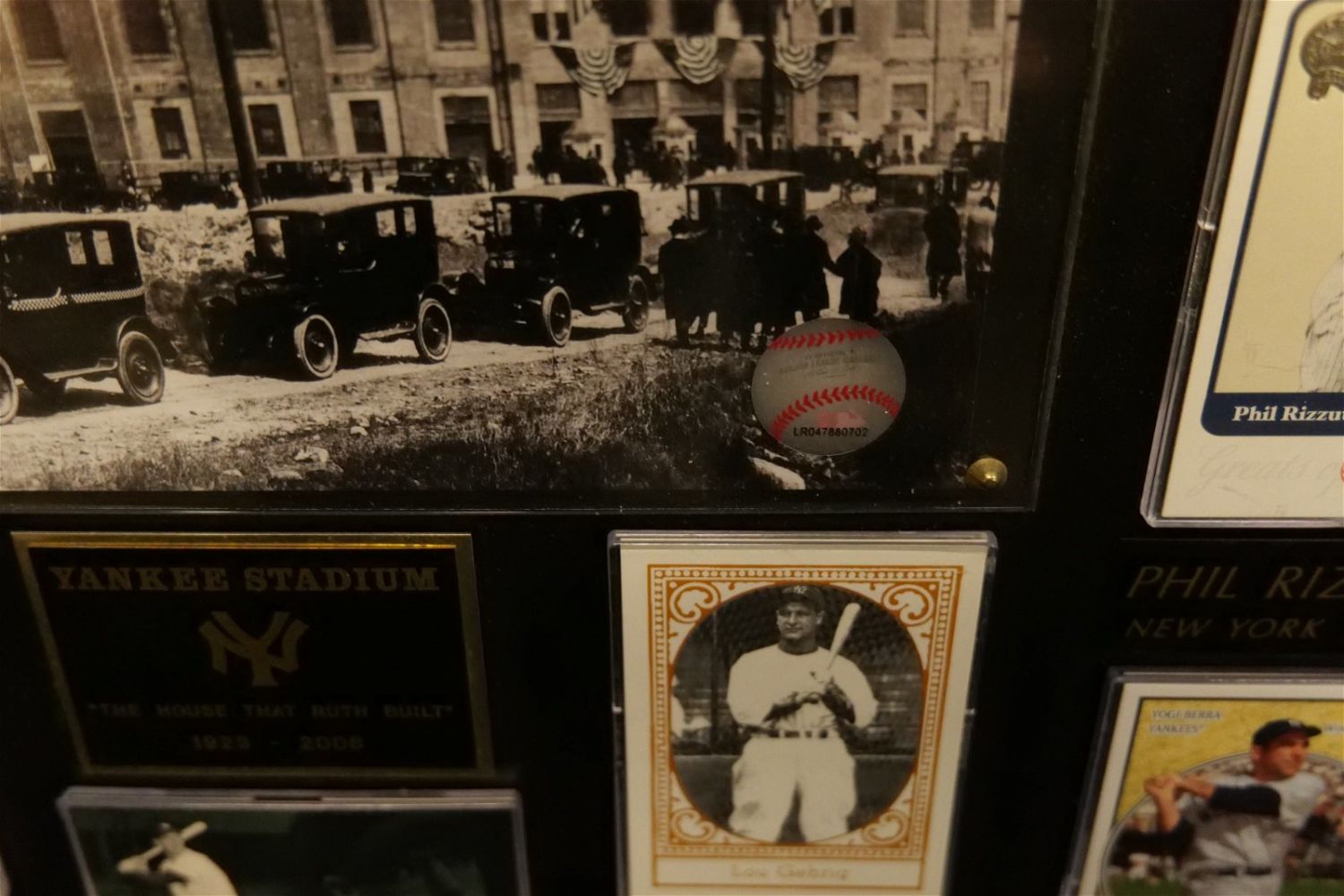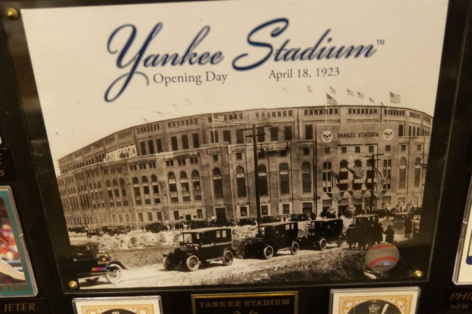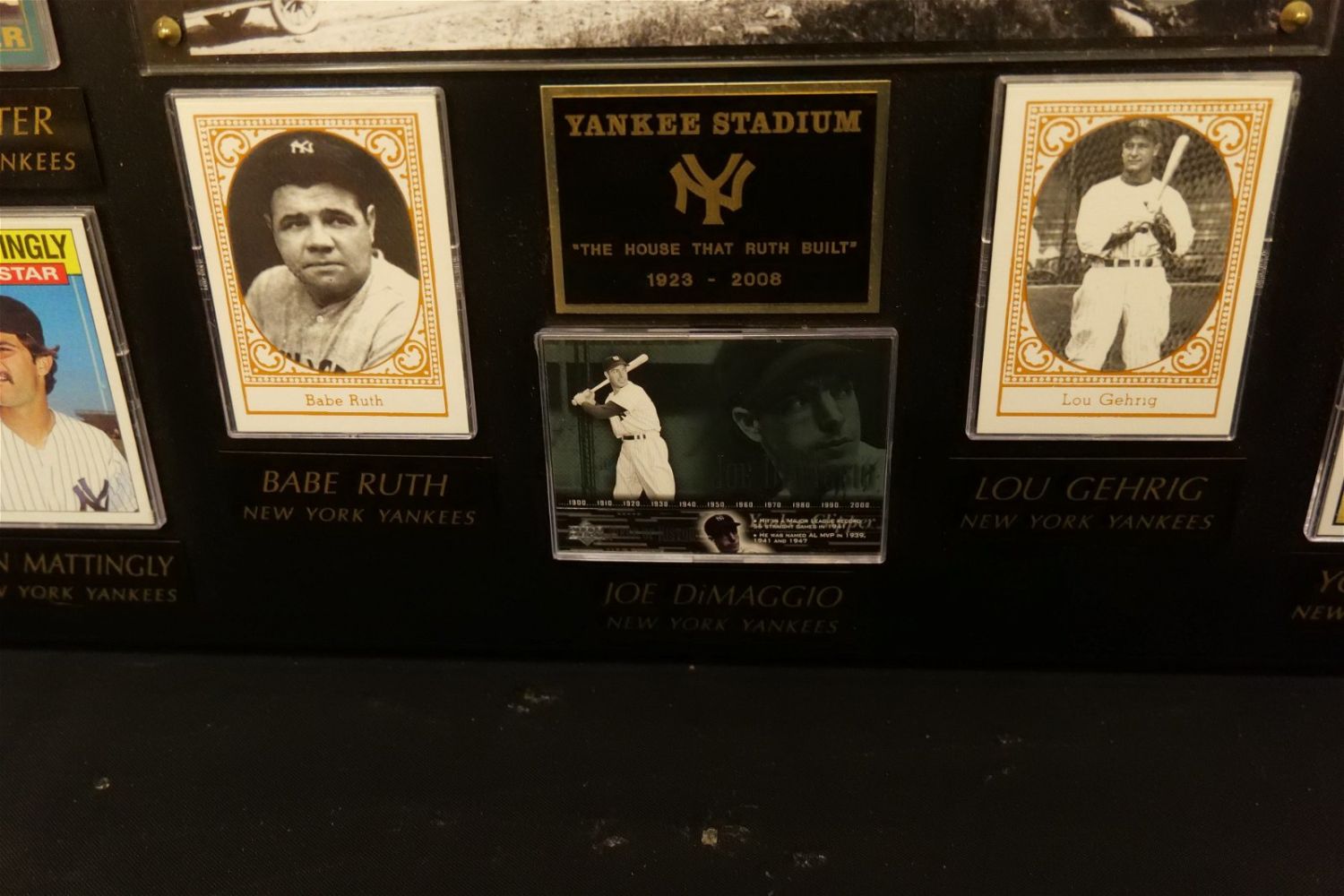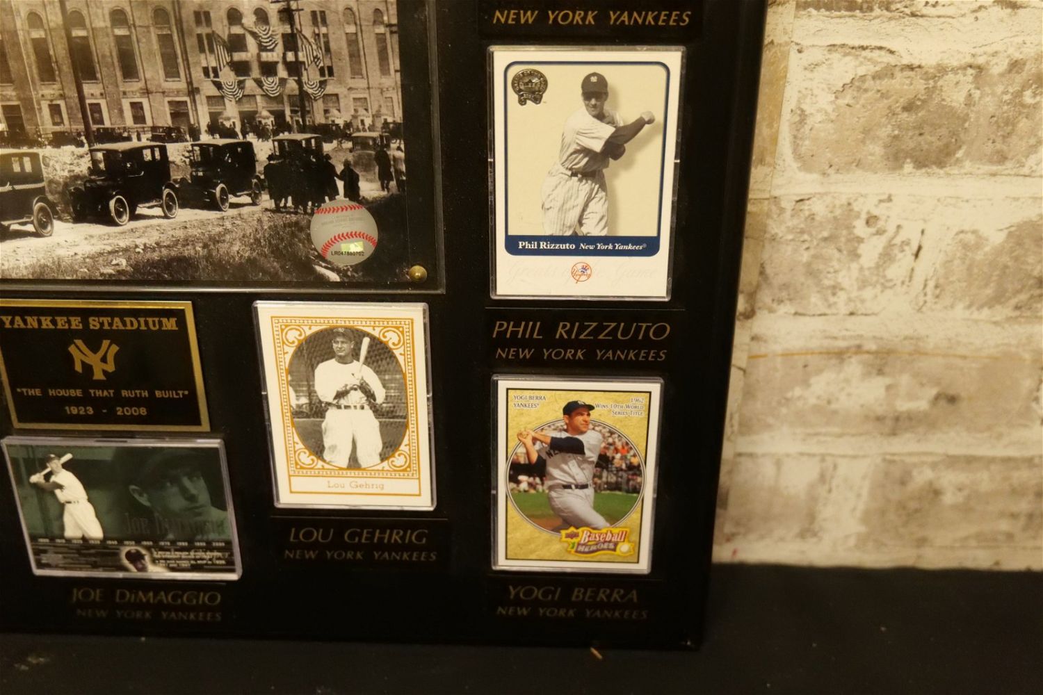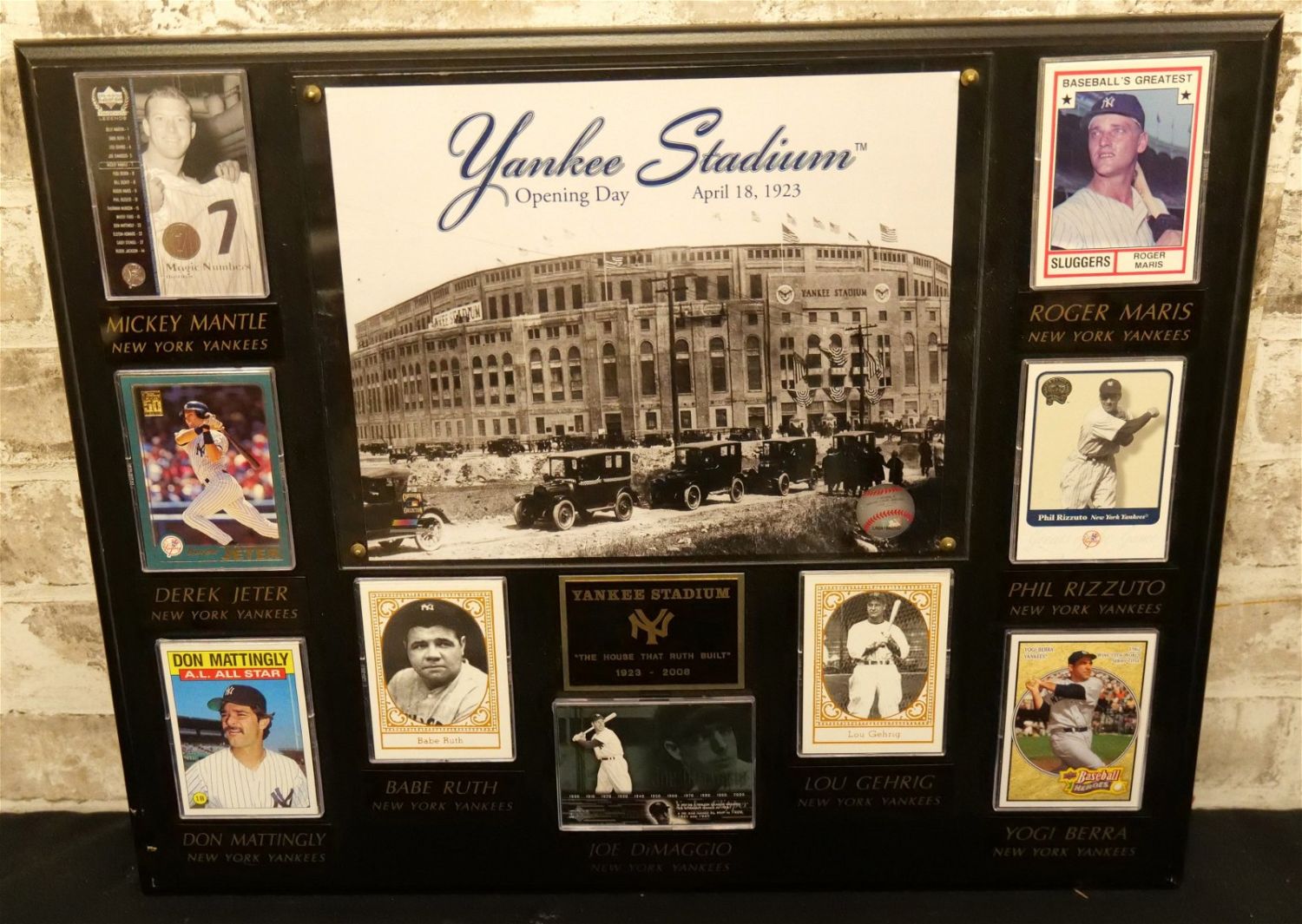 Officially Licensed MLB Yankees Stadium Day April 18th 1923 Plaque and Sports Card Collage. "The House that Ruth Built 1923-2008". Sports cards include Mickey Mantle, Derek Jeter, Don Mattingly, Babe Ruth, Joe DiMaggio, Lou Gehrig, Roger Maris, Phil Rizzuto, and Yogi Berra. Wear on edge of plaque. Measures 16" tall x 20" wide. All invoices must be paid within 24 hours of the sale. We offer multiple shipping options, please read the terms as they have changed. We also offer Pick-Ups Thursday, Friday, Saturday, and Monday immediately following the sale. BY APPOINTMENT ONLY. PLEASE READ THE NEW TERMS!!!