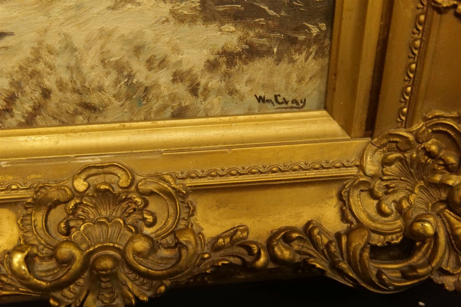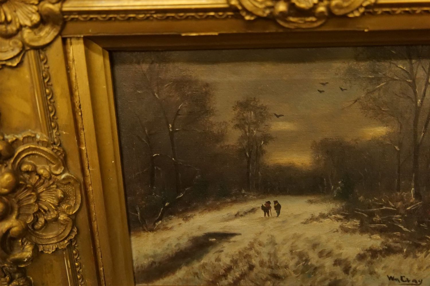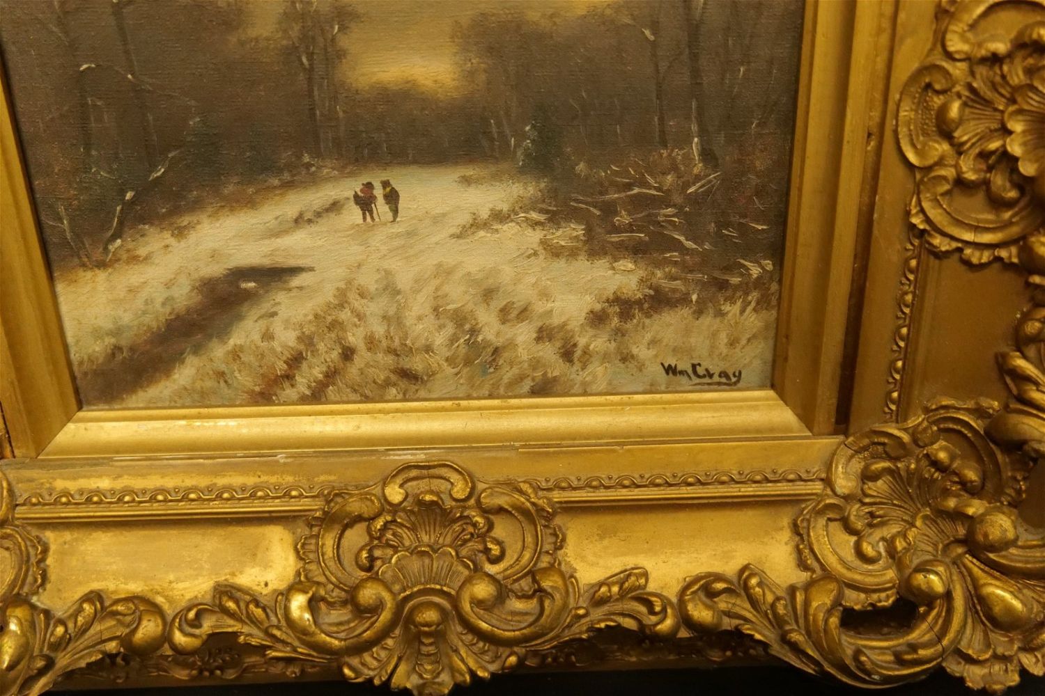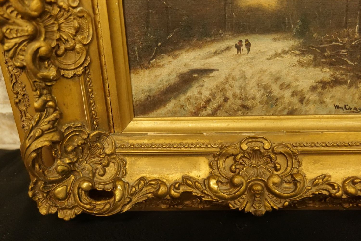 Oil on canvas landscape depicting two men on a trail with a winter scene. Signed lower right – Appears to be Wm Clay. Has minor loss to frame. Measures 17" tall x 19" long. All invoices must be paid within 24 hours of the sale. We offer multiple shipping options, please read the terms as they have changed. We also offer Pick-Ups Thursday, Friday, Saturday, and Monday immediately following the sale. BY APPOINTMENT ONLY. PLEASE READ THE NEW TERMS!!!