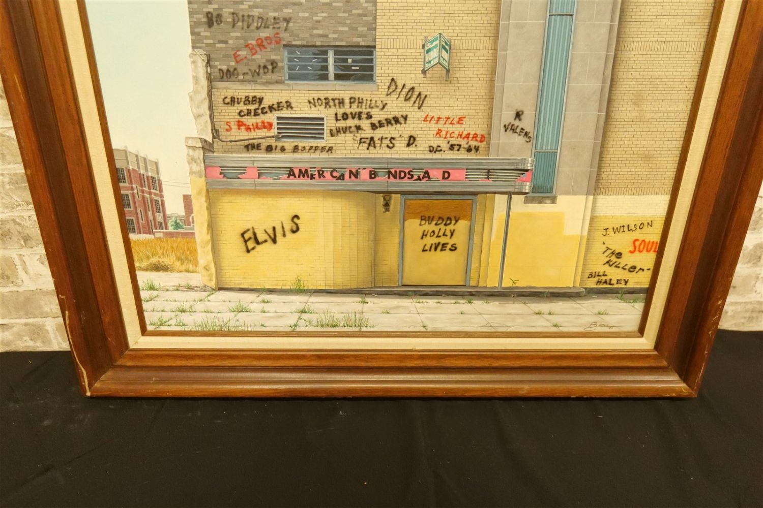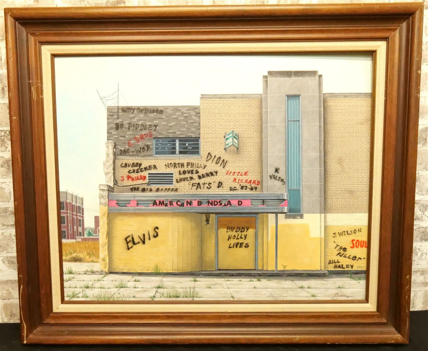 Original Oil on Board by Glen Fortune Banse (1948-2018) Entitled "American Bandstand Revisited". Signed Lower Right. Dated ’89. Signed and noted on back of canvas. Measures 32.5" tall x 38.5". wide. Framed. The frame has some scratching. Glen Fortune Banse (1948-2018) (aka Banse, Wayne Howell, Etienne and many other names) was born in Camden, New Jersey in 1948. He attended Ottawa University, Kansas State and The New School For Social Research in New York City, and has been a professional artist for close to 50 years. He was a co-partner in 3 Art Publishing businesses which specialized in Fine Art Signed and Numbered Limited Edition Lithography, Etchings and other fine art mediums. While publishing his own work, he was also the Art Director of all three companies and had the pleasure of working with, directing, and instructing hundreds of great nationally and internationally known artists such as Peter Max, Will Moses, John Pitre, Sarah Churchill (Daughter of Winston Churchill), Gerald Lubeck, Yanni Posnikov, and the world-famous Mr. Blackwell of Hollywood’s 10 Worst Dressed List presented each year. Throughout the 1990’s Glen was Personal Assistant, Confidant and Agent to Television Pioneer and Legend "Buffalo Bob" Smith of Howdy Doody fame, spending many years crisscrossing America with the Iconic Duo. Glen more recently focused his energy on Oils, presenting a well diversified subject matter. His works and portraits have been commissioned by the state of New Jersey, with pieces on permanent display in various State Buildings throughout the Garden State. His Art can be found in museums, galleries, celebrity collections and other venues through out the world.Provenance: This piece was consigned from the estate of Glen Fortune BanseAll invoices must be paid within 24 hours of the sale. We offer multiple shipping options, please read the terms as they have changed. We also offer Pick-Ups Thursday, Friday, Saturday, and Monday immediately following the sale. BY APPOINTMENT ONLY. PLEASE READ THE NEW TERMS!!