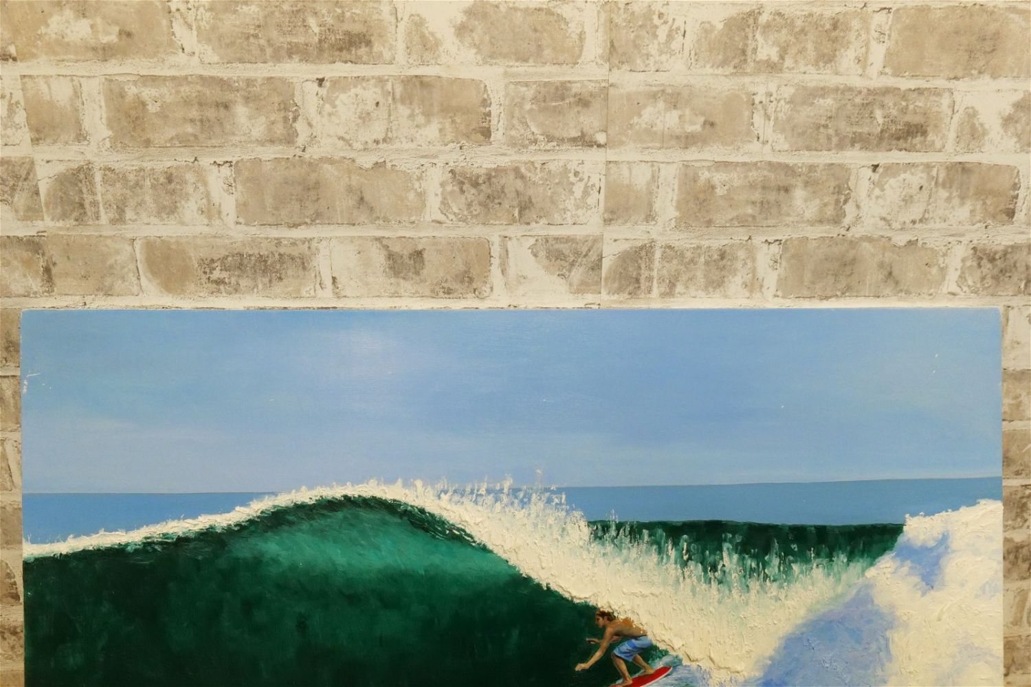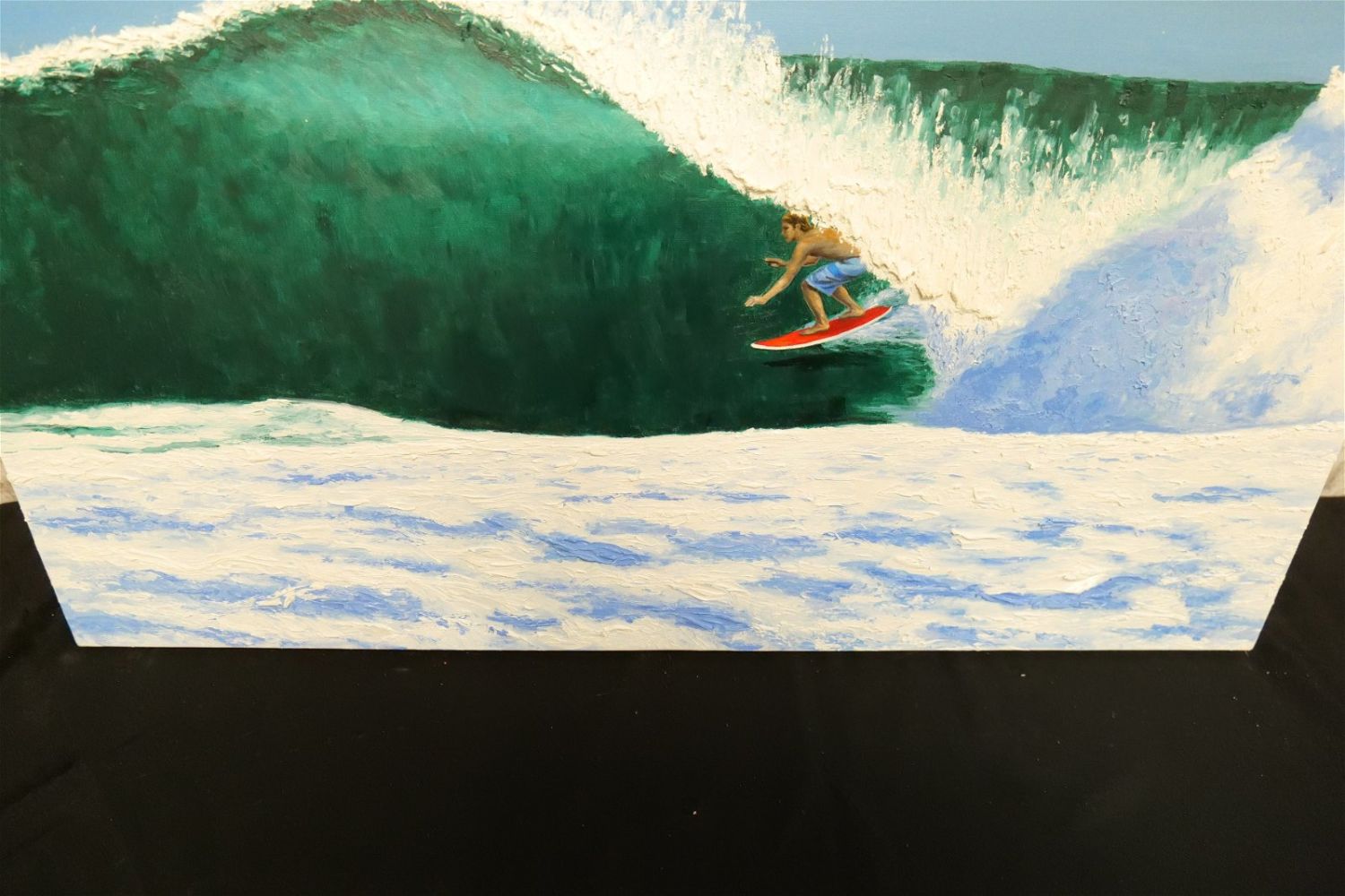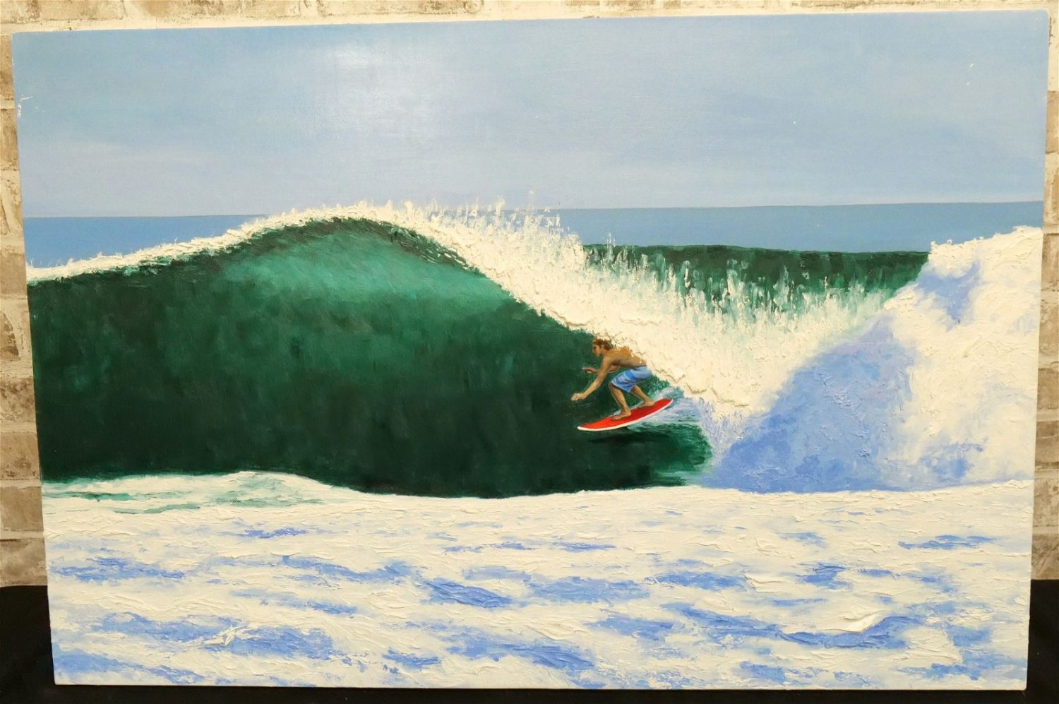 Original Oil on Canvas by Glen Fortune Banse (1948-2018) Entitled "Shootin’ The Curl". Heavily Textured Wave. Signed and noted on back of canvas. Dated 2017. Measures 24" tall x 36". wide. Unframed. Glen Fortune Banse (1948-2018) (aka Banse, Wayne Howell, Etienne and many other names) was born in Camden, New Jersey in 1948. He attended Ottawa University, Kansas State and The New School For Social Research in New York City, and has been a professional artist for close to 50 years. He was a co-partner in 3 Art Publishing businesses which specialized in Fine Art Signed and Numbered Limited Edition Lithography, Etchings and other fine art mediums. While publishing his own work, he was also the Art Director of all three companies and had the pleasure of working with, directing, and instructing hundreds of great nationally and internationally known artists such as Peter Max, Will Moses, John Pitre, Sarah Churchill (Daughter of Winston Churchill), Gerald Lubeck, Yanni Posnikov, and the world-famous Mr. Blackwell of Hollywood’s 10 Worst Dressed List presented each year. Throughout the 1990’s Glen was Personal Assistant, Confidant and Agent to Television Pioneer and Legend "Buffalo Bob" Smith of Howdy Doody fame, spending many years crisscrossing America with the Iconic Duo. Glen more recently focused his energy on Oils, presenting a well diversified subject matter. His works and portraits have been commissioned by the state of New Jersey, with pieces on permanent display in various State Buildings throughout the Garden State. His Art can be found in museums, galleries, celebrity collections and other venues through out the world.Provenance: This piece was consigned from the estate of Glen Fortune BanseAll invoices must be paid within 24 hours of the sale. We offer multiple shipping options, please read the terms as they have changed. We also offer Pick-Ups Thursday, Friday, Saturday, and Monday immediately following the sale. BY APPOINTMENT ONLY. PLEASE READ THE NEW TERMS!!!
