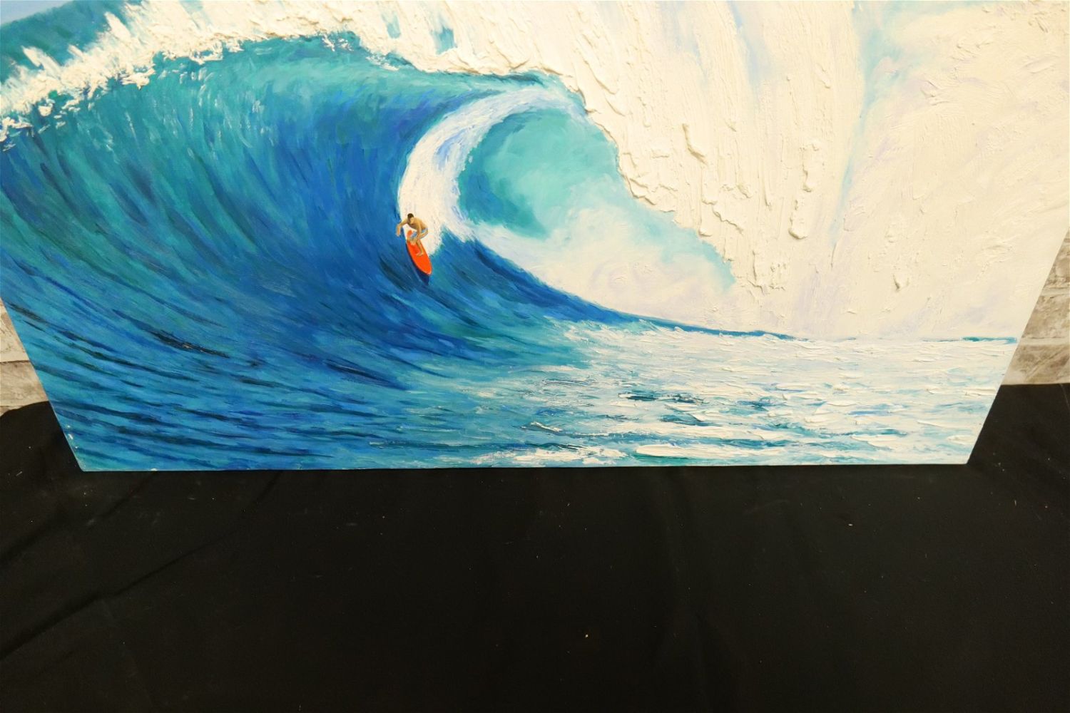 Original Oil on Canvas by Glen Fortune Banse (1948-2018) Entitled "Bonzai". Heavily Textured Wave. Signed and noted on back of canvas. Dated 2017. Measures 24" tall x 36". wide. Unframed. Glen Fortune Banse (1948-2018) (aka Banse, Wayne Howell, Etienne and many other names) was born in Camden, New Jersey in 1948. He attended Ottawa University, Kansas State and The New School For Social Research in New York City, and has been a professional artist for close to 50 years. He was a co-partner in 3 Art Publishing businesses which specialized in Fine Art Signed and Numbered Limited Edition Lithography, Etchings and other fine art mediums. While publishing his own work, he was also the Art Director of all three companies and had the pleasure of working with, directing, and instructing hundreds of great nationally and internationally known artists such as Peter Max, Will Moses, John Pitre, Sarah Churchill (Daughter of Winston Churchill), Gerald Lubeck, Yanni Posnikov, and the world-famous Mr. Blackwell of Hollywood’s 10 Worst Dressed List presented each year. Throughout the 1990’s Glen was Personal Assistant, Confidant and Agent to Television Pioneer and Legend "Buffalo Bob" Smith of Howdy Doody fame, spending many years crisscrossing America with the Iconic Duo. Glen more recently focused his energy on Oils, presenting a well diversified subject matter. His works and portraits have been commissioned by the state of New Jersey, with pieces on permanent display in various State Buildings throughout the Garden State. His Art can be found in museums, galleries, celebrity collections and other venues through out the world.Provenance: This piece was consigned from the estate of Glen Fortune BanseAll invoices must be paid within 24 hours of the sale. We offer multiple shipping options, please read the terms as they have changed. We also offer Pick-Ups Thursday, Friday, Saturday, and Monday immediately following the sale. BY APPOINTMENT ONLY. PLEASE READ THE NEW TERMS!!!